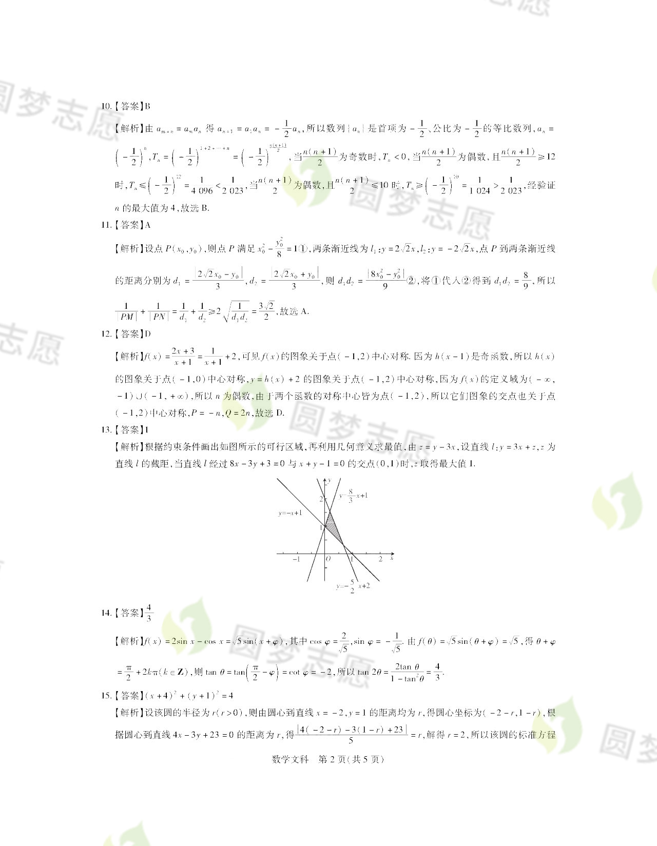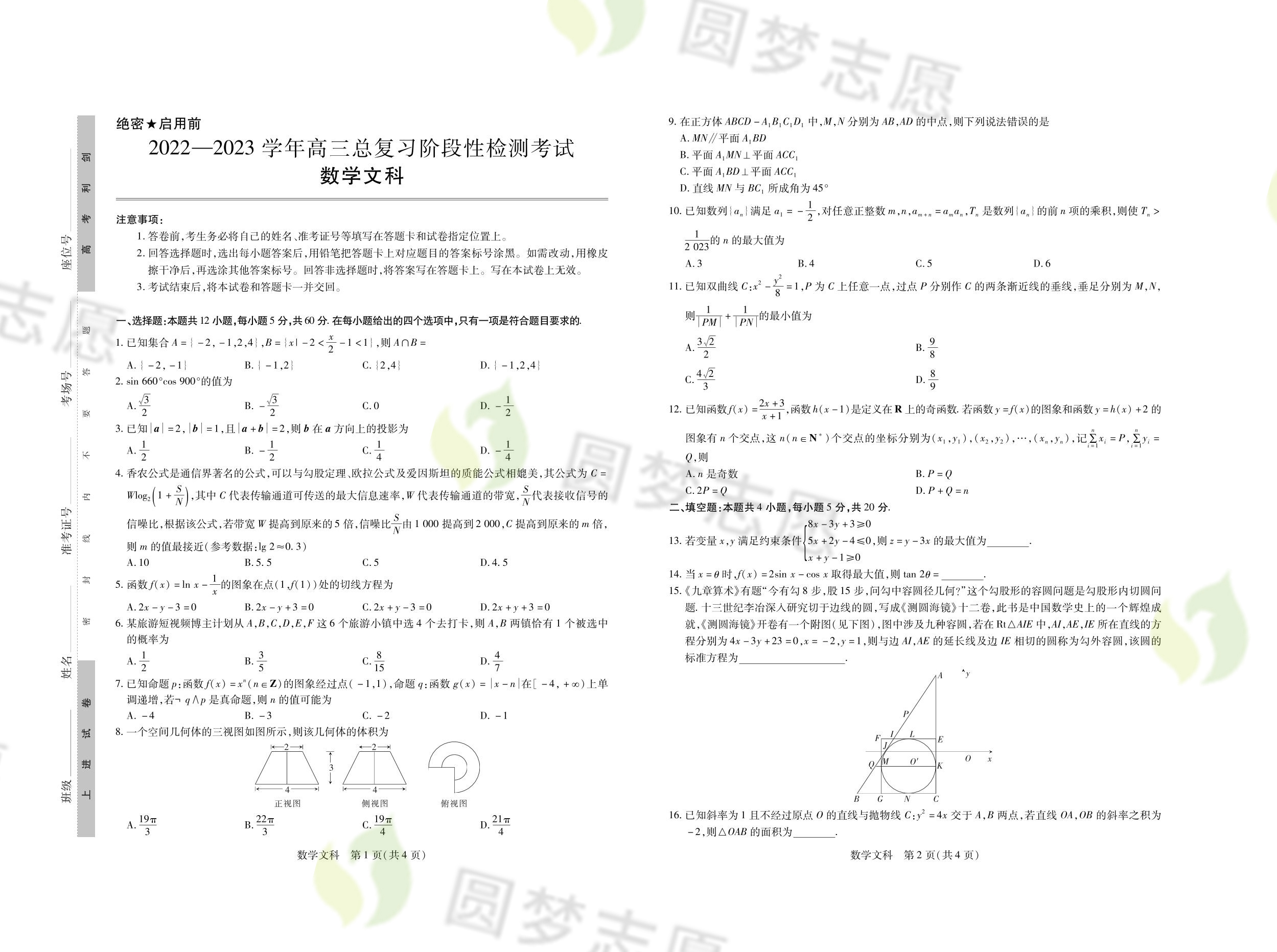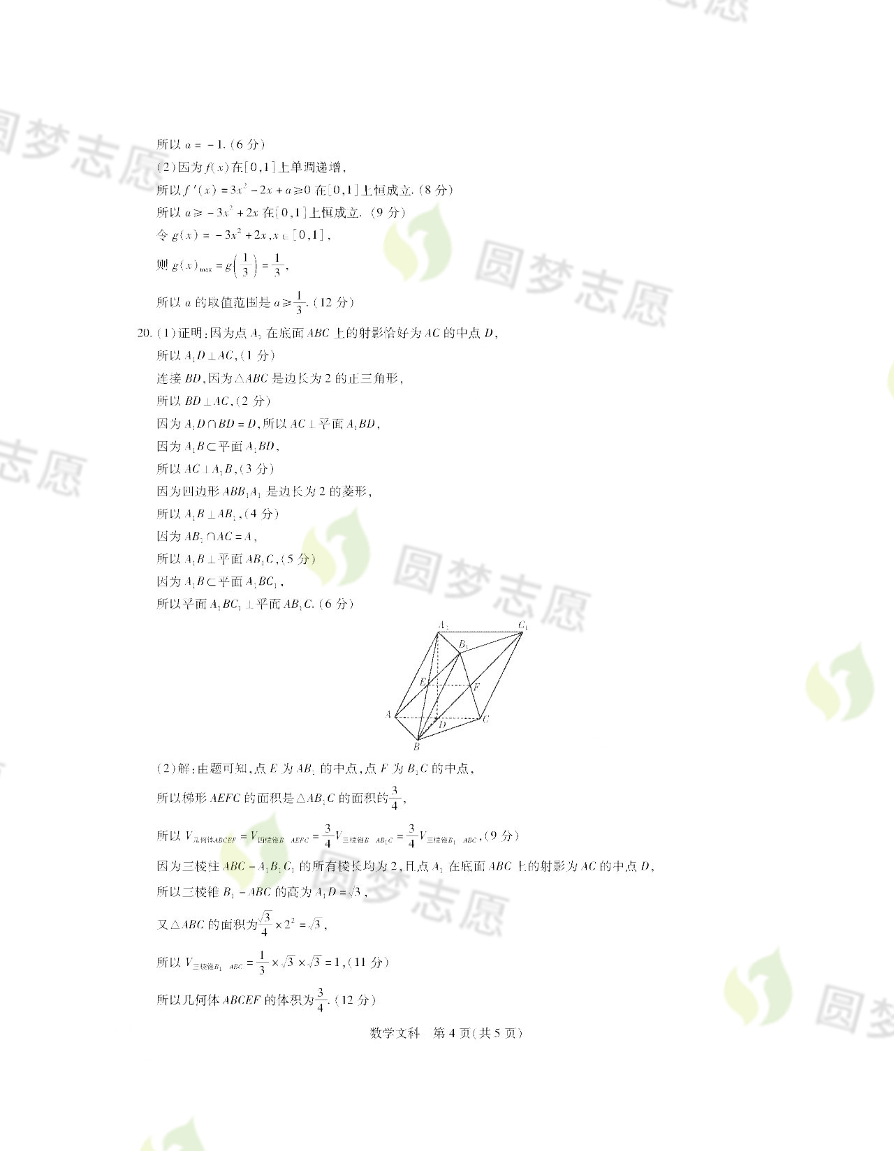 三、2023江西稳派/智慧上进高三12月联考文科数学试卷真题及参考答案
