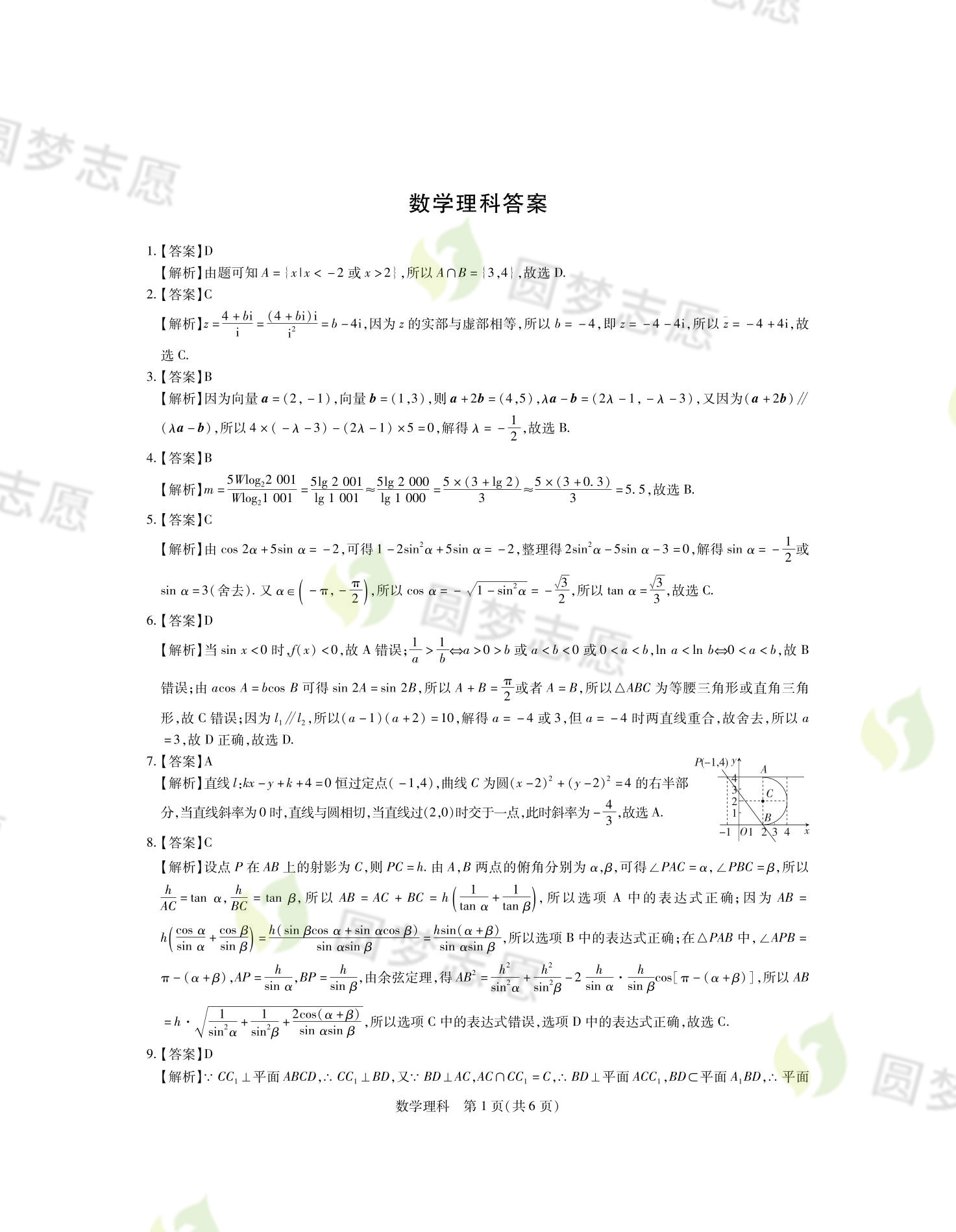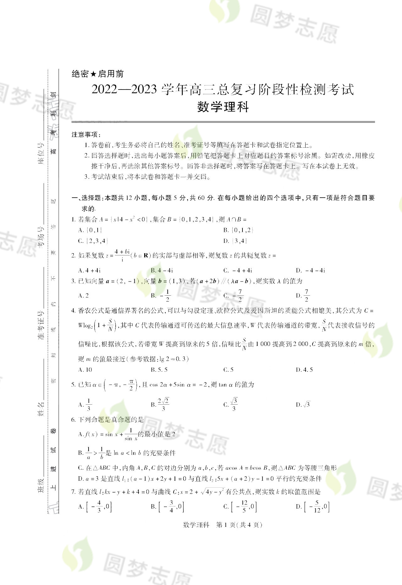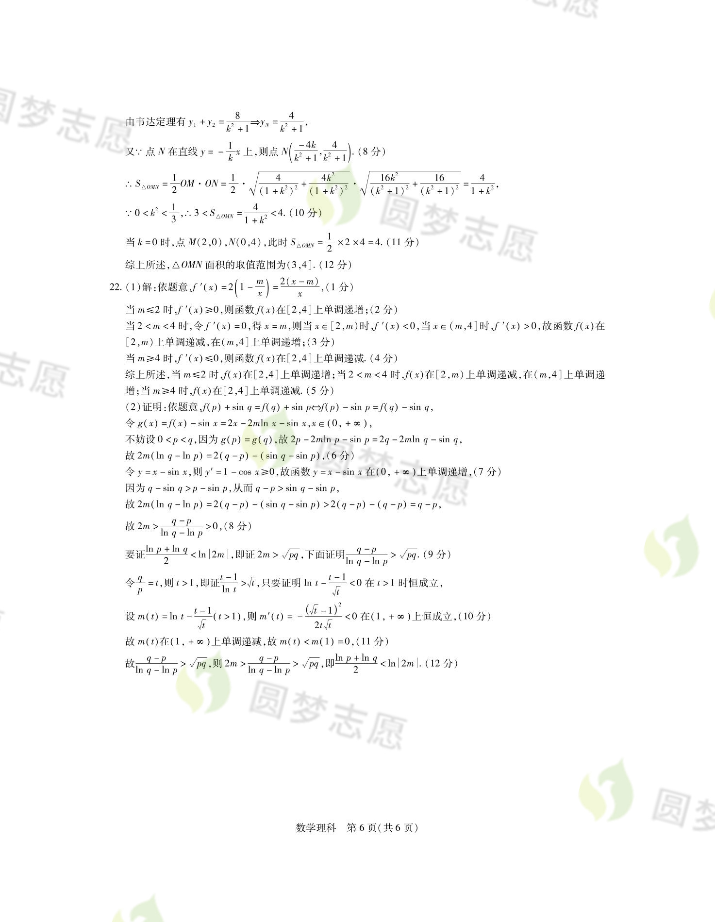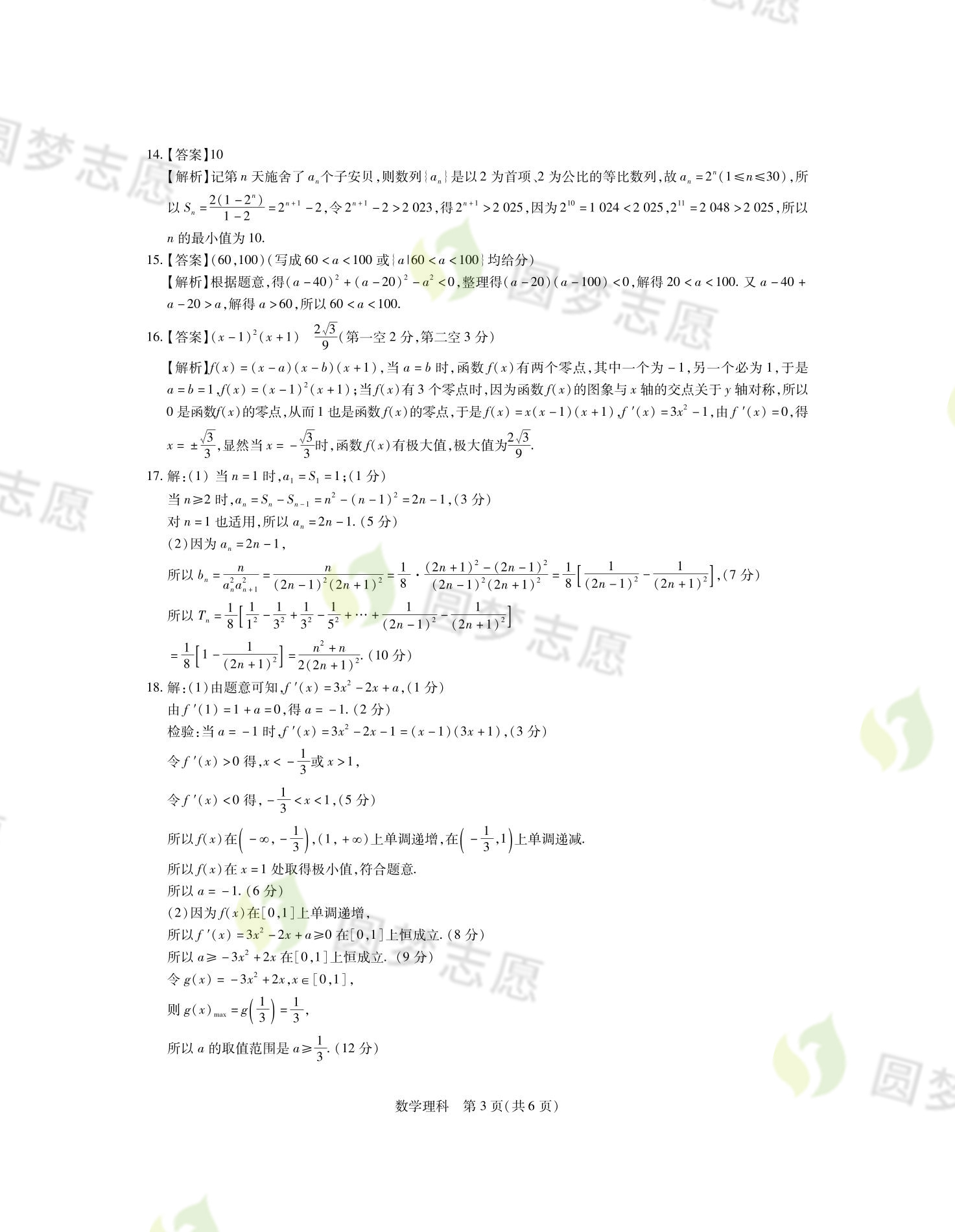 二、2023江西稳派/智慧上进高三12月联考理科数学试卷真题及参考答案