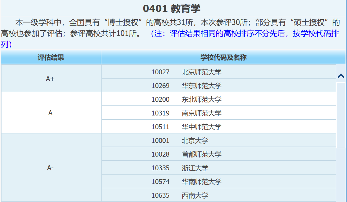 2、在全国第四轮学科评估中,教育学获评A类学科的仅有10所大学,具体如下: