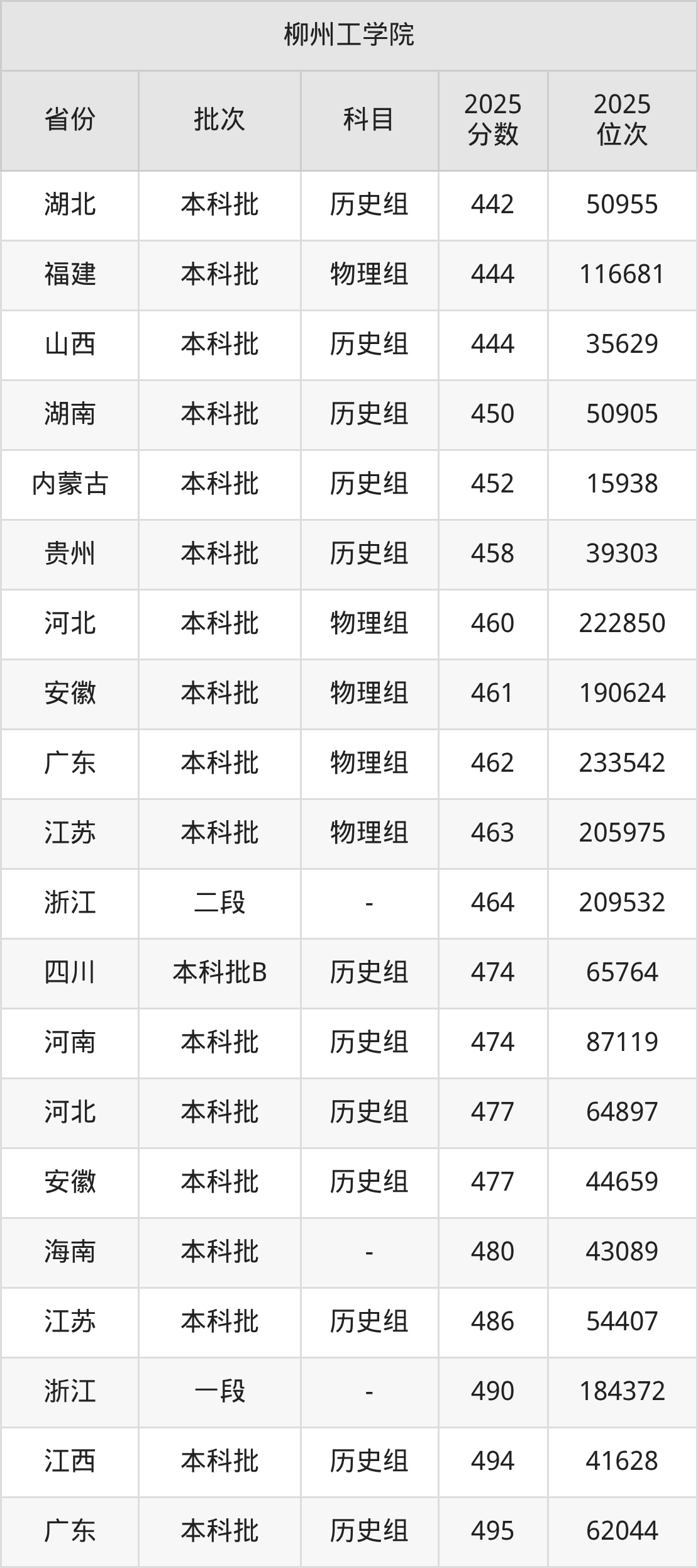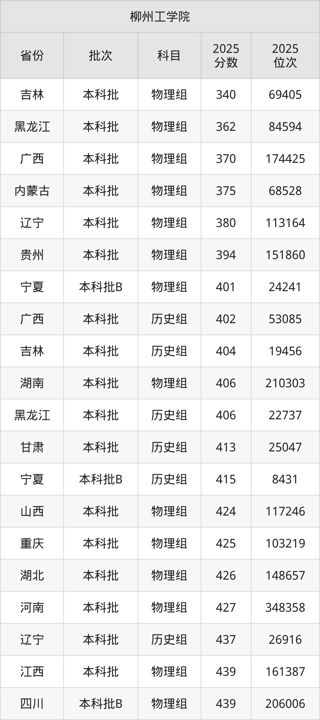 二、柳州工学院2025年录取分数线汇总