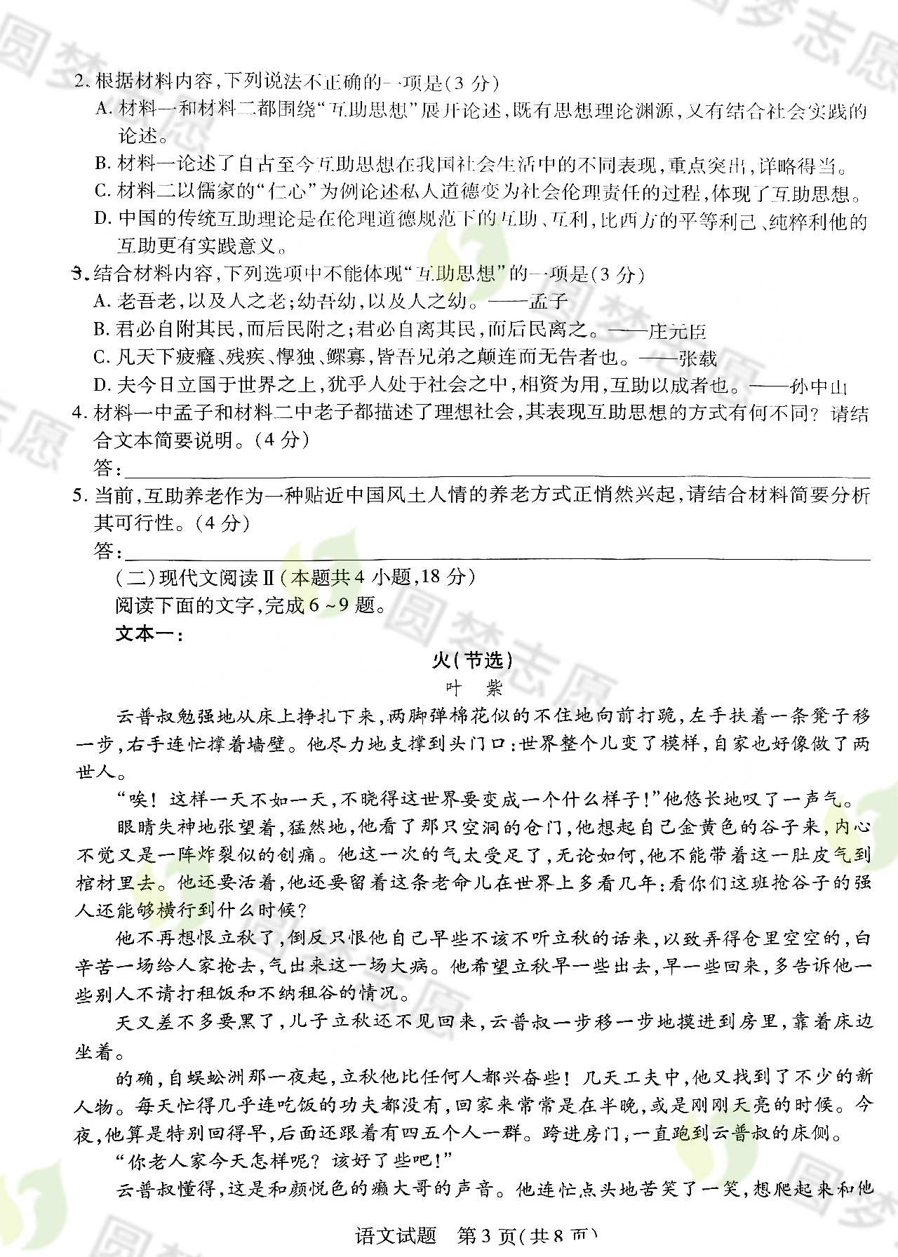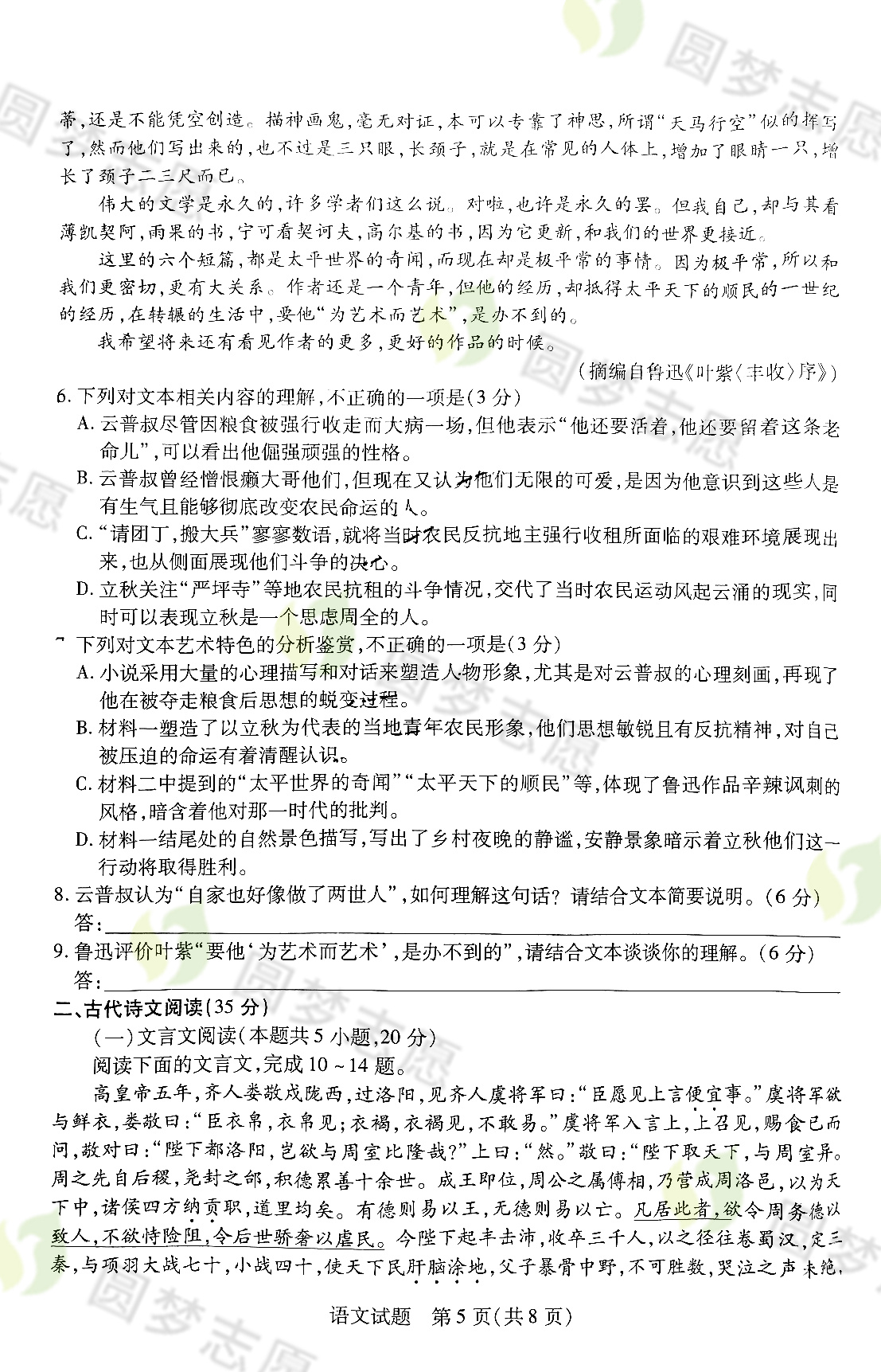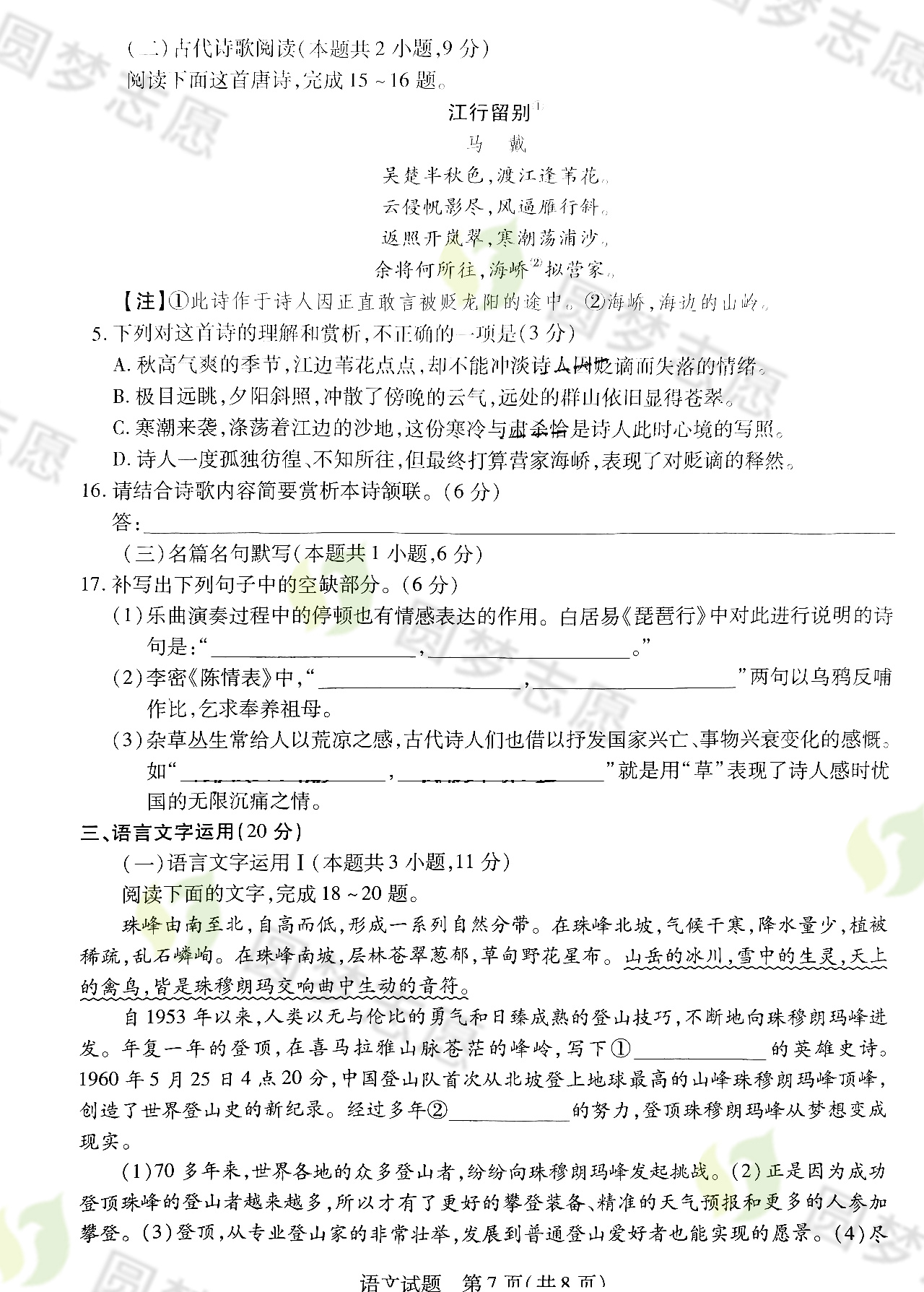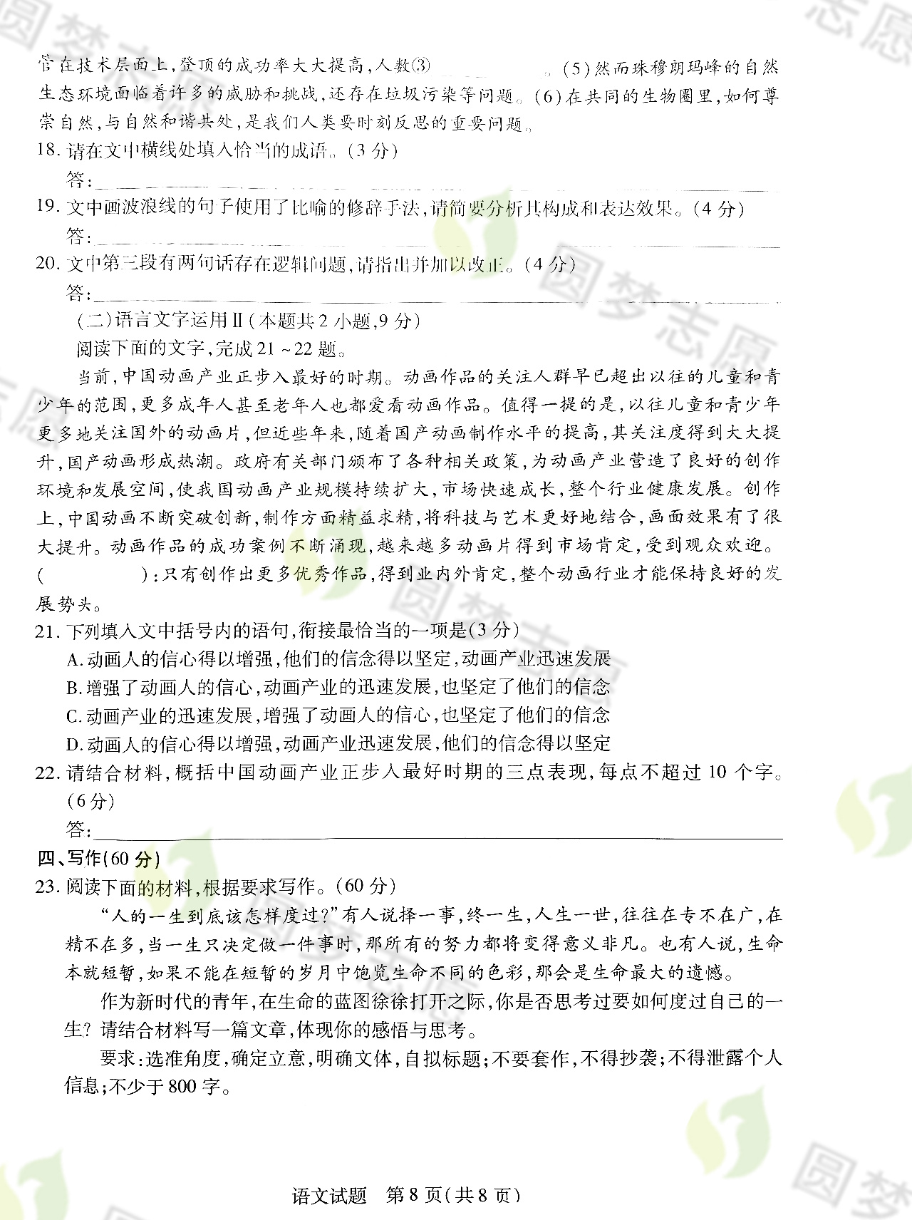 语文试卷及答案解析,高考100网(gk100.com)请大家保持关注!