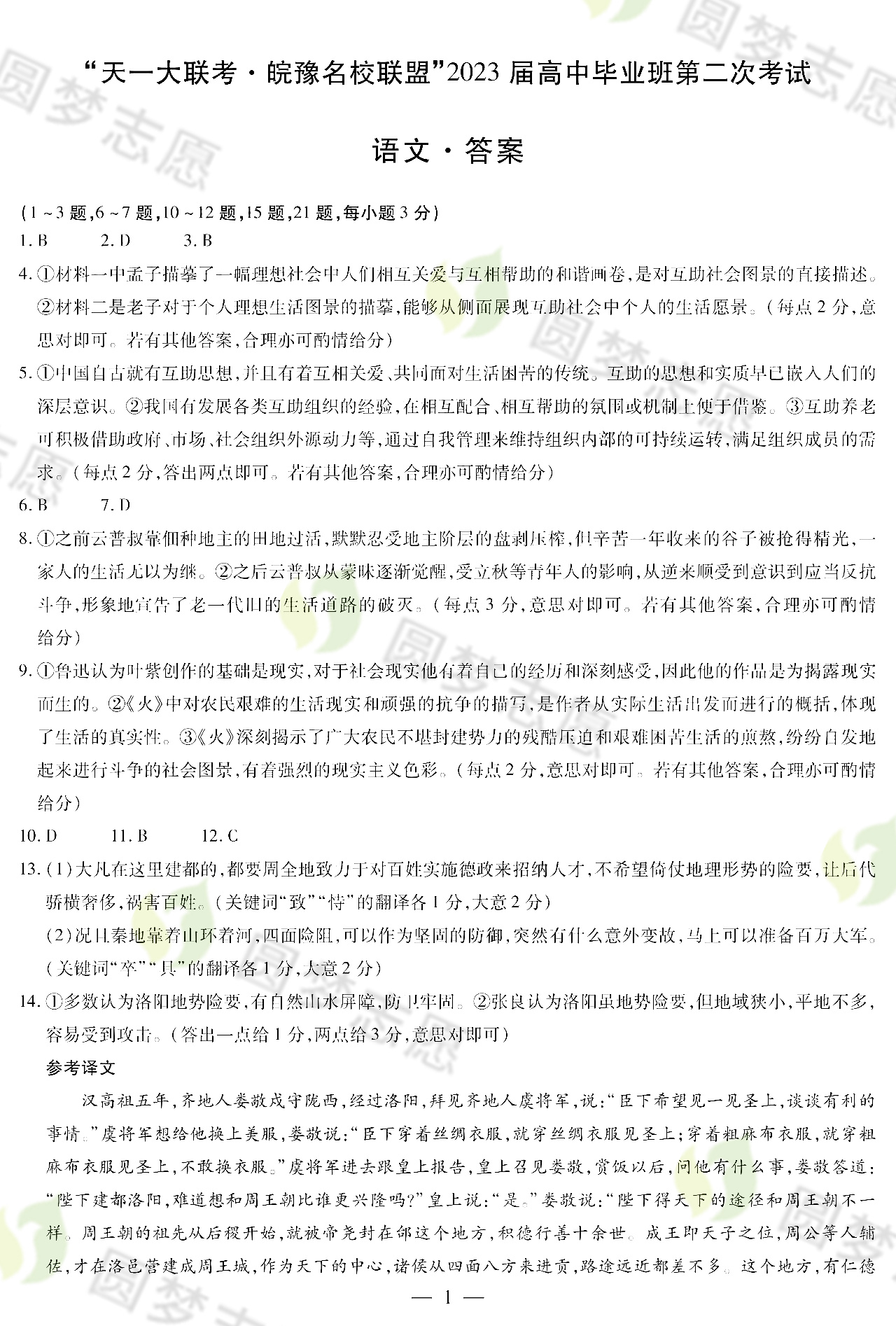 一、天一大联考皖豫名校联盟2022-2023高三二联语文试卷及答案解析