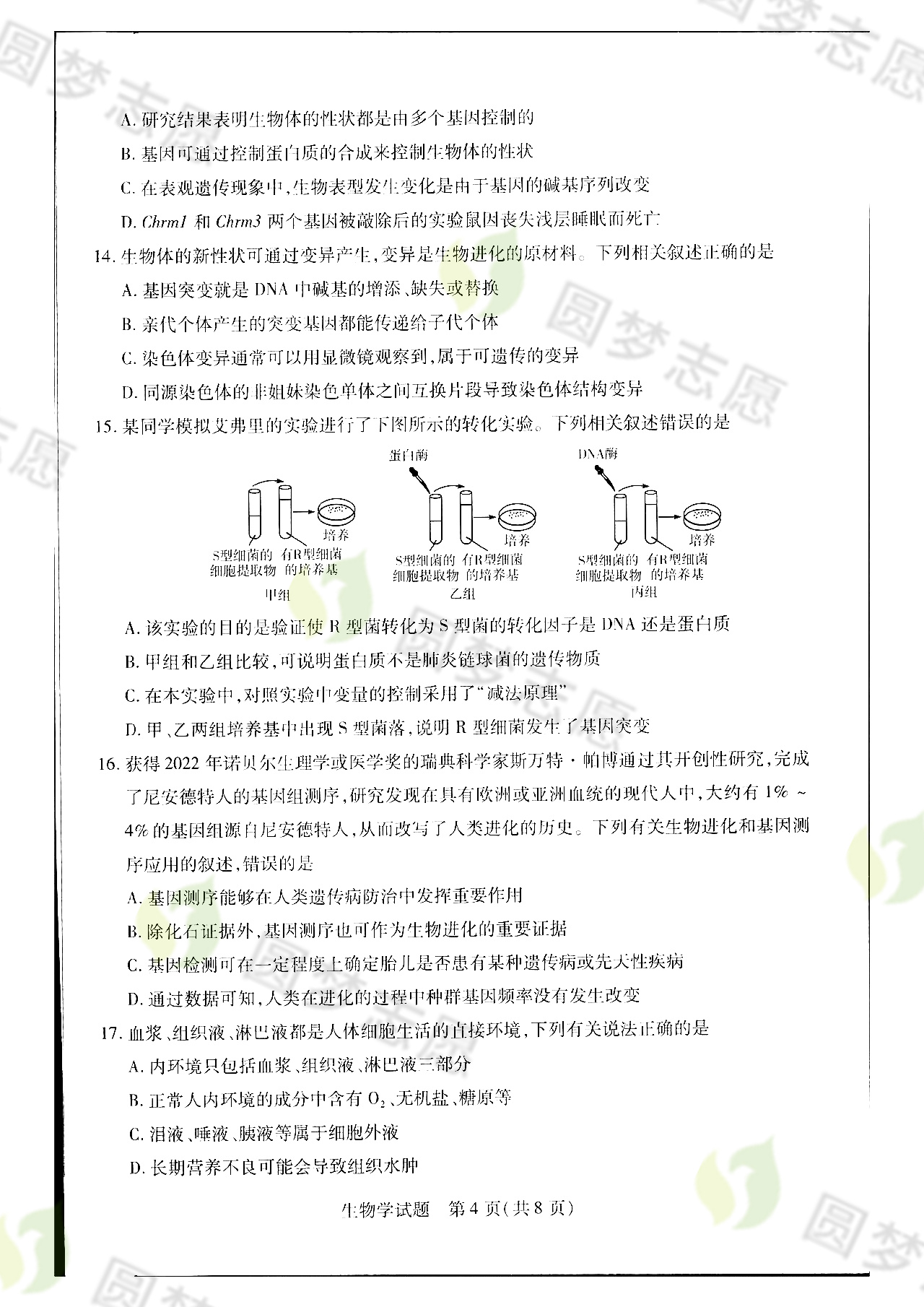 生物试卷及答案解析,高考100网(gk100.com)请大家保持关注!