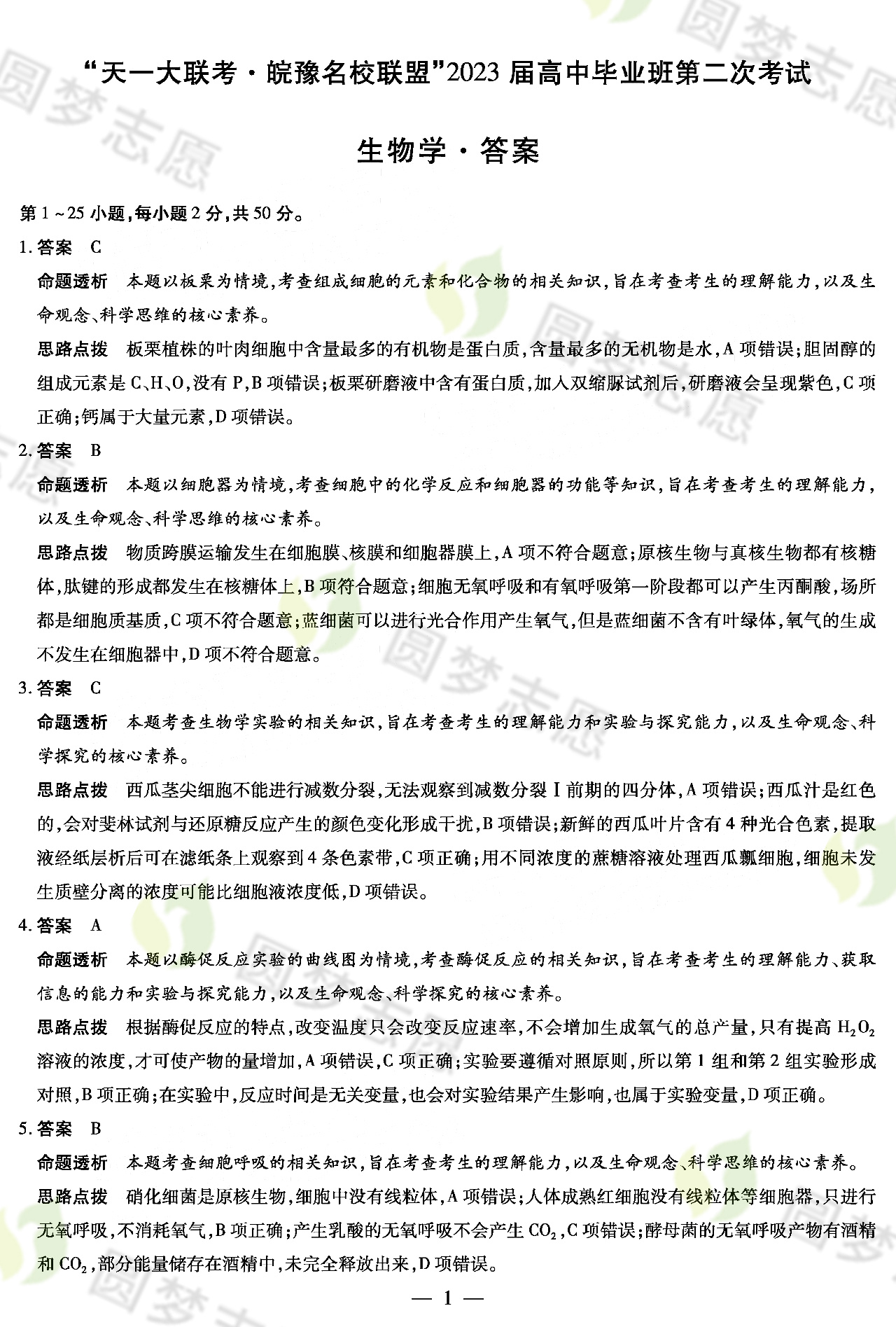更多试卷,包括物理、历史、政治、化学、生物、地理等,请大家进入圆梦志愿后自行查看更多内容。