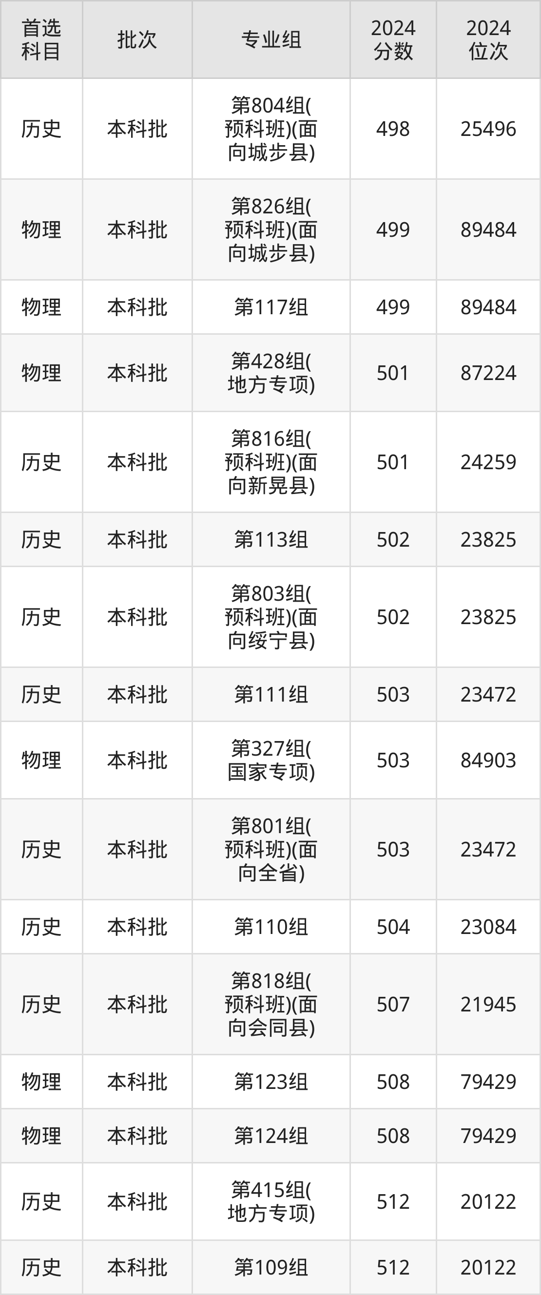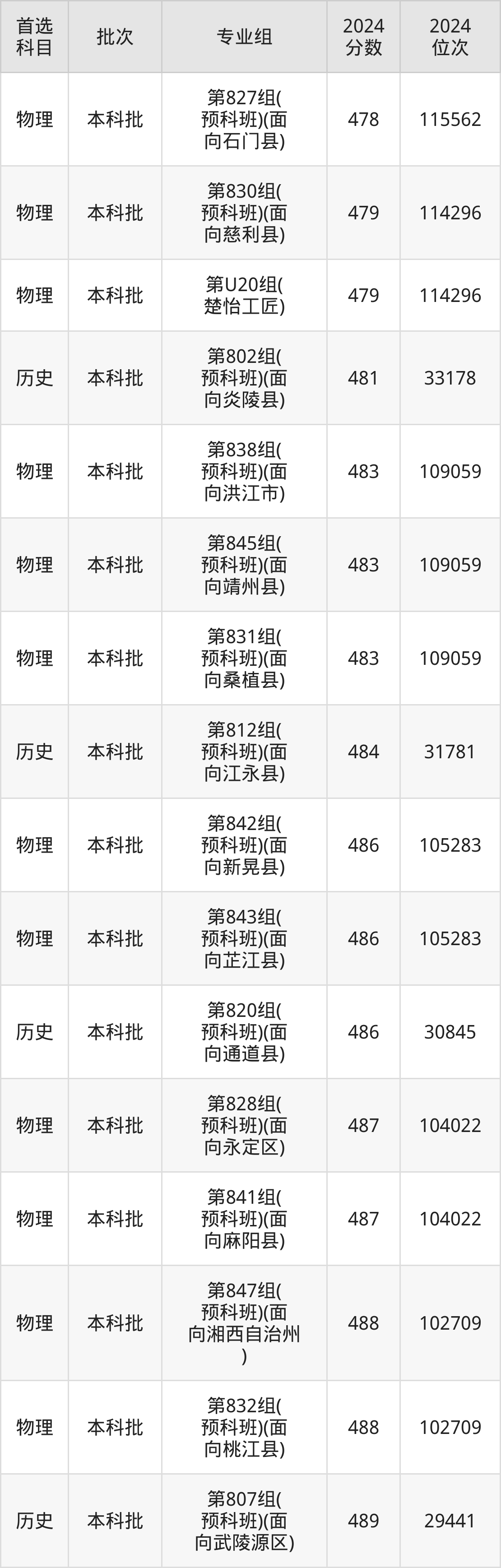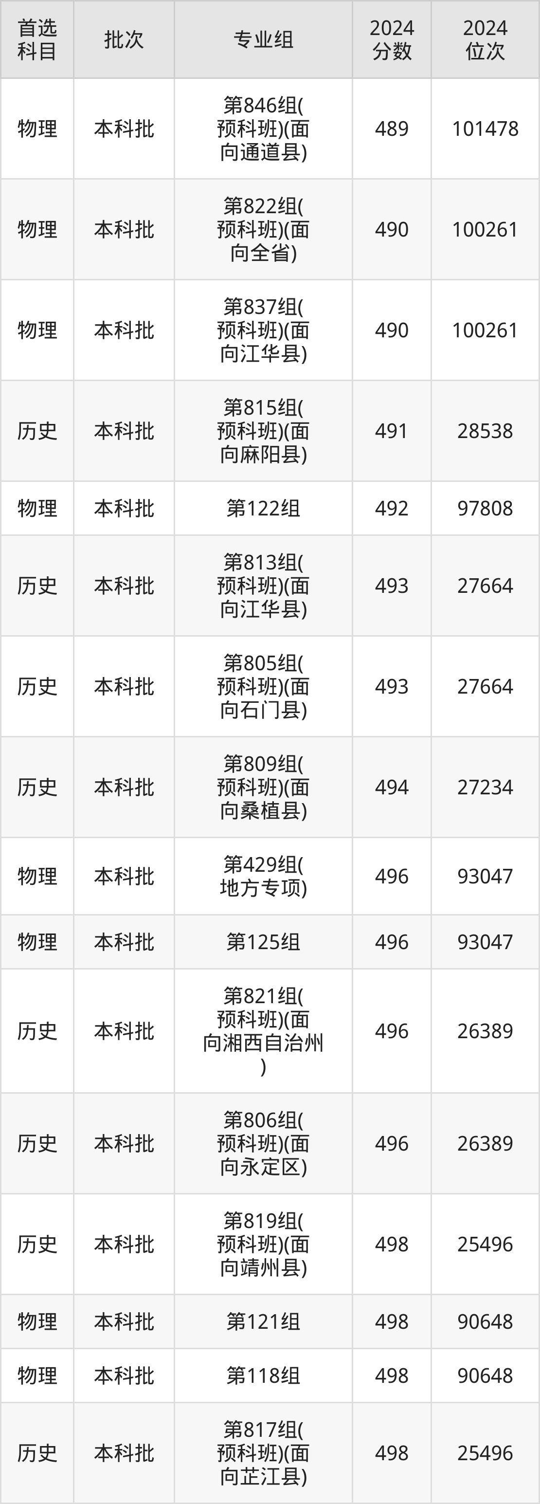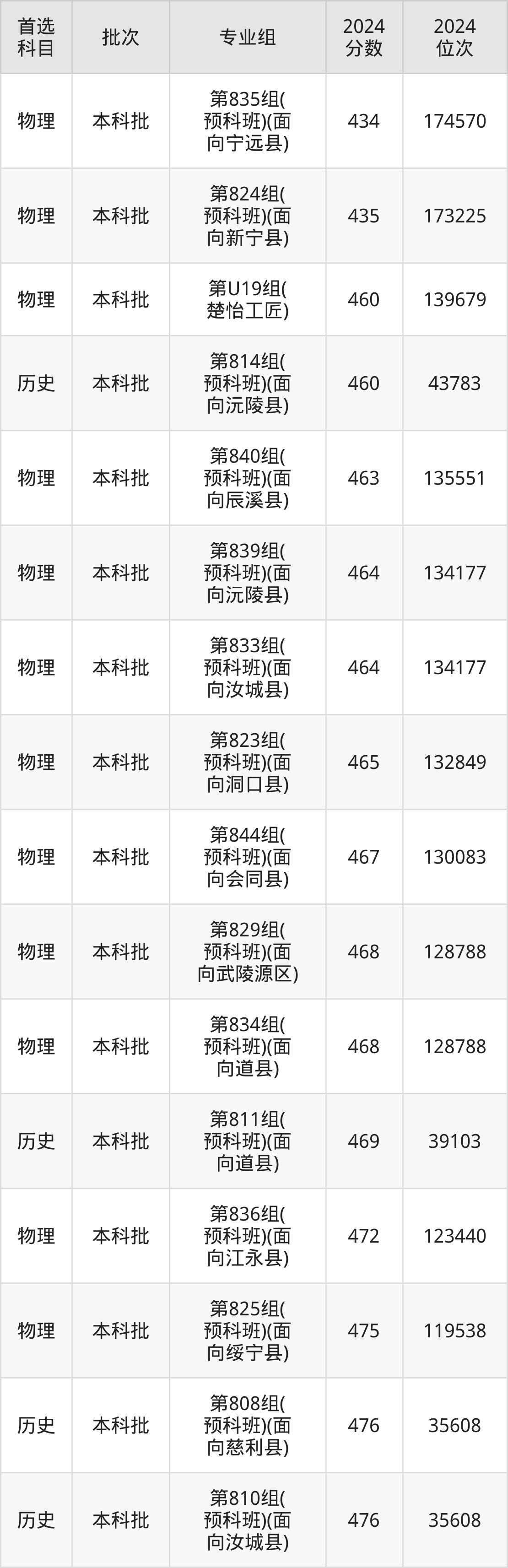 从2024年吉首大学在湖南省内的录取分数线来看,本科批录取分数线都在430分以上,录取分数线最高的是第314组(国家专项),2024年最低分为516分;录取分数线最低的是第835组(预科班)(面向宁远县),2024年最低分为434分。