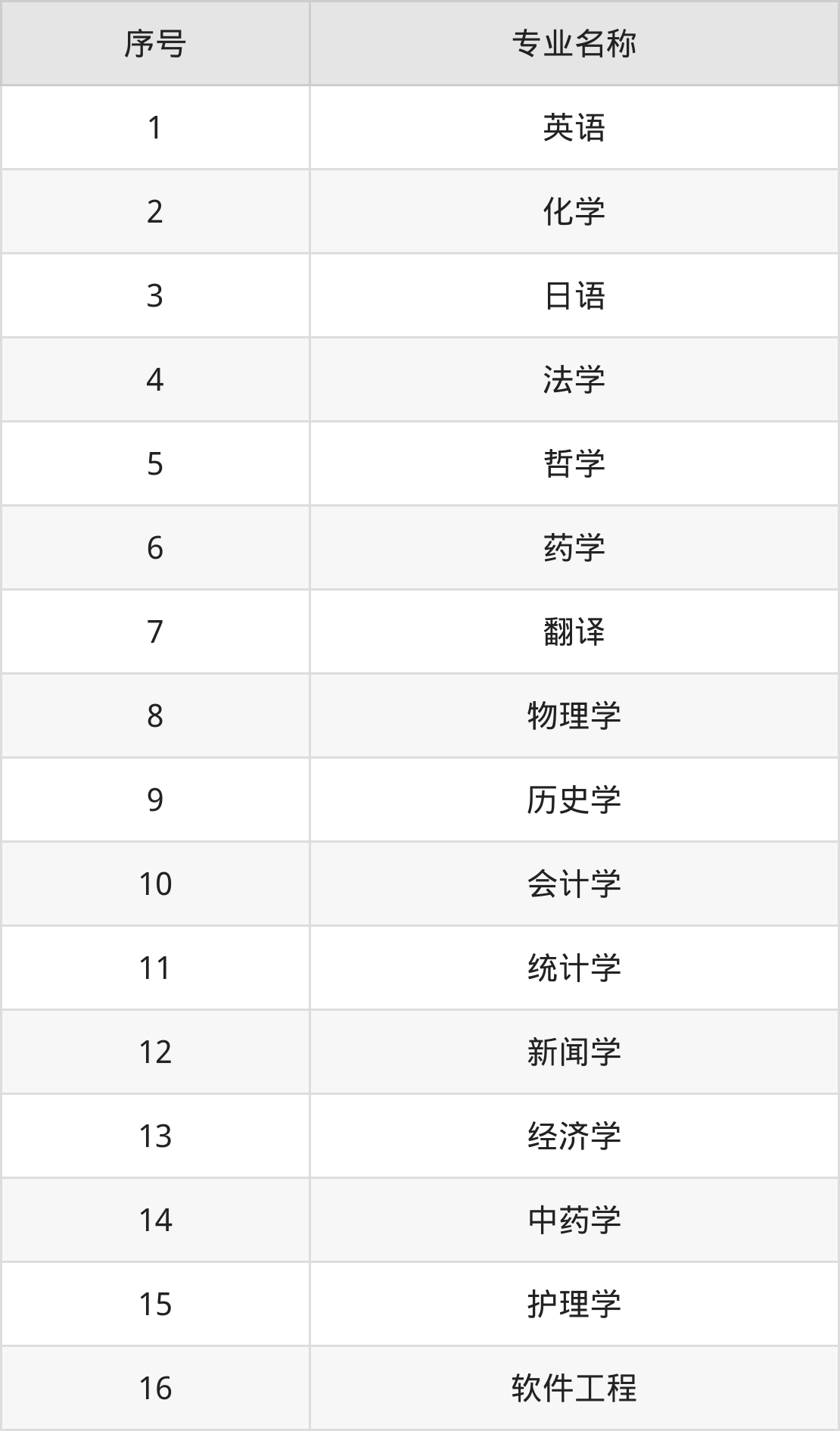 历史类(文科)本科招生专业:英语、日语、哲学、法学、翻译、新闻学、护理学、经济学、会计学、商务英语等。