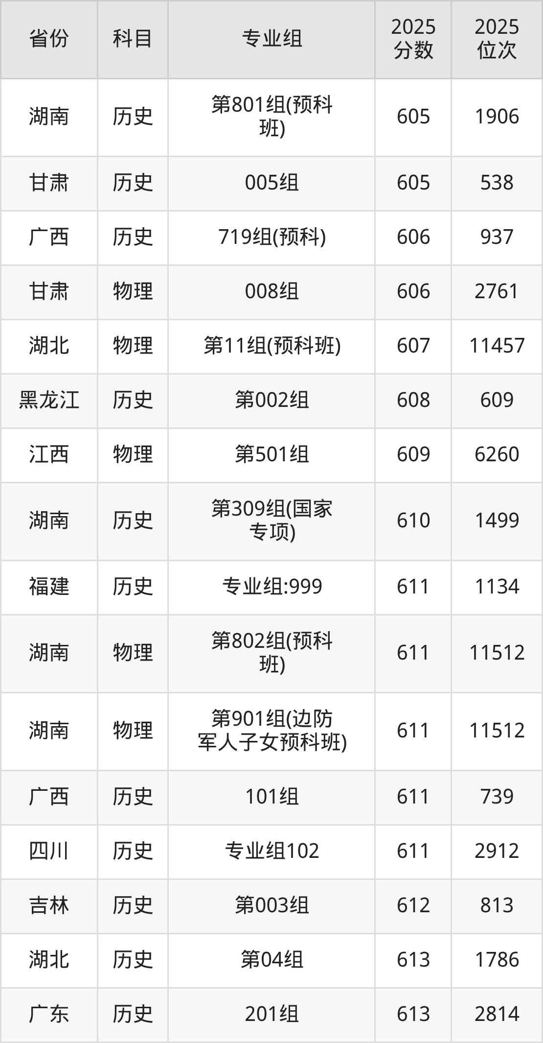 物理类:2025年湖南大学录取最低分是492分(山西),对应的位次排名是66383名。
