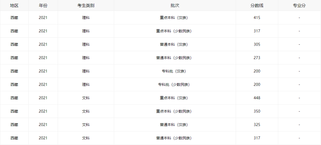 全国乙卷适用省市分数线(缺新疆)