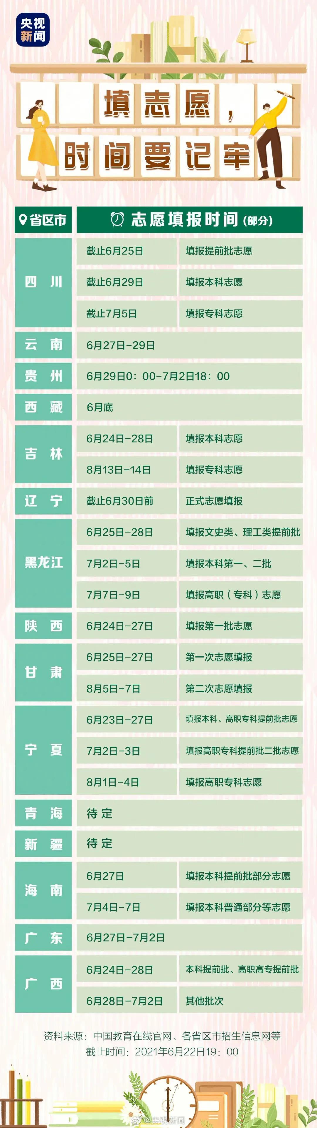 2021年各地高考志愿填报时间安排表