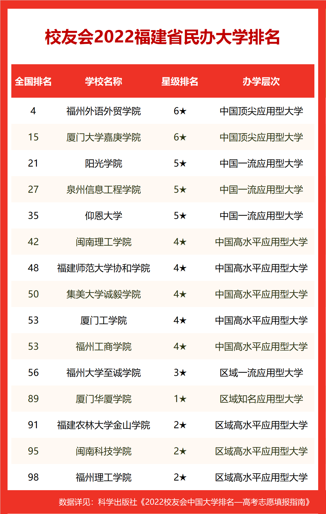 以下为2022年校友会福建省民办大学排名