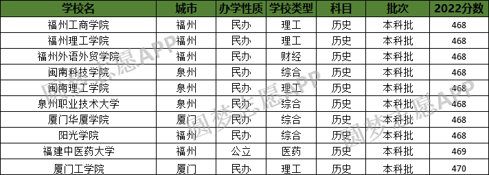 福州工商学院:2022年最低分数为468