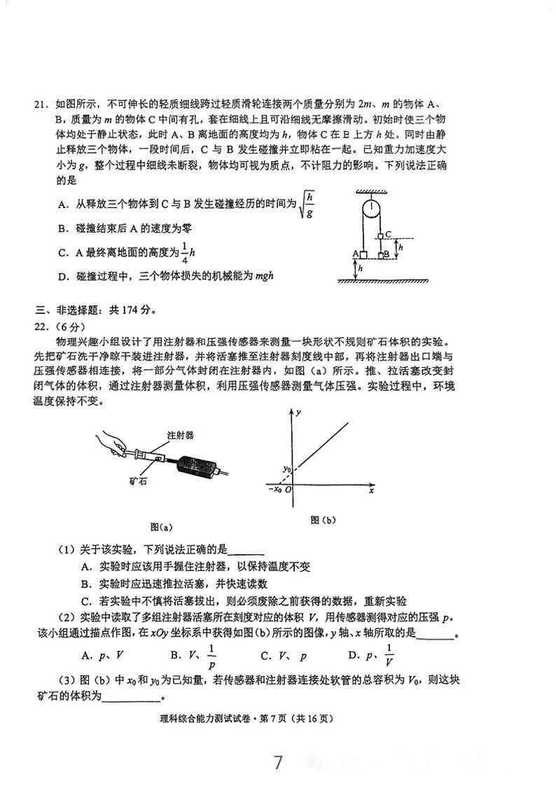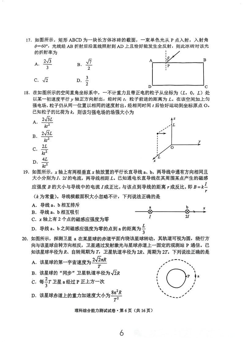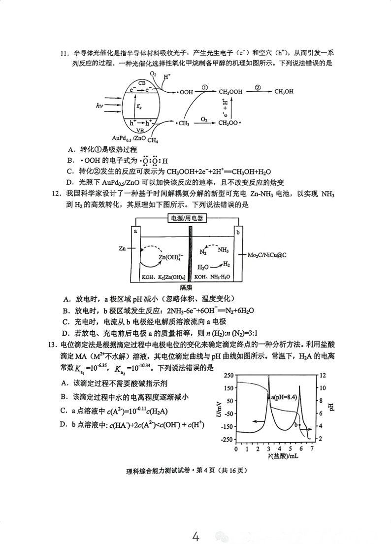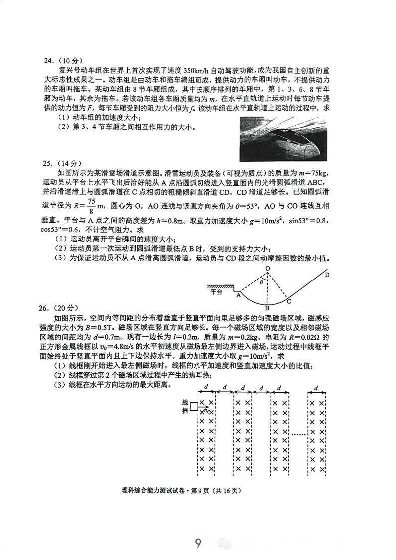 5.2024云南高三第二次统测理综试卷及答案解析