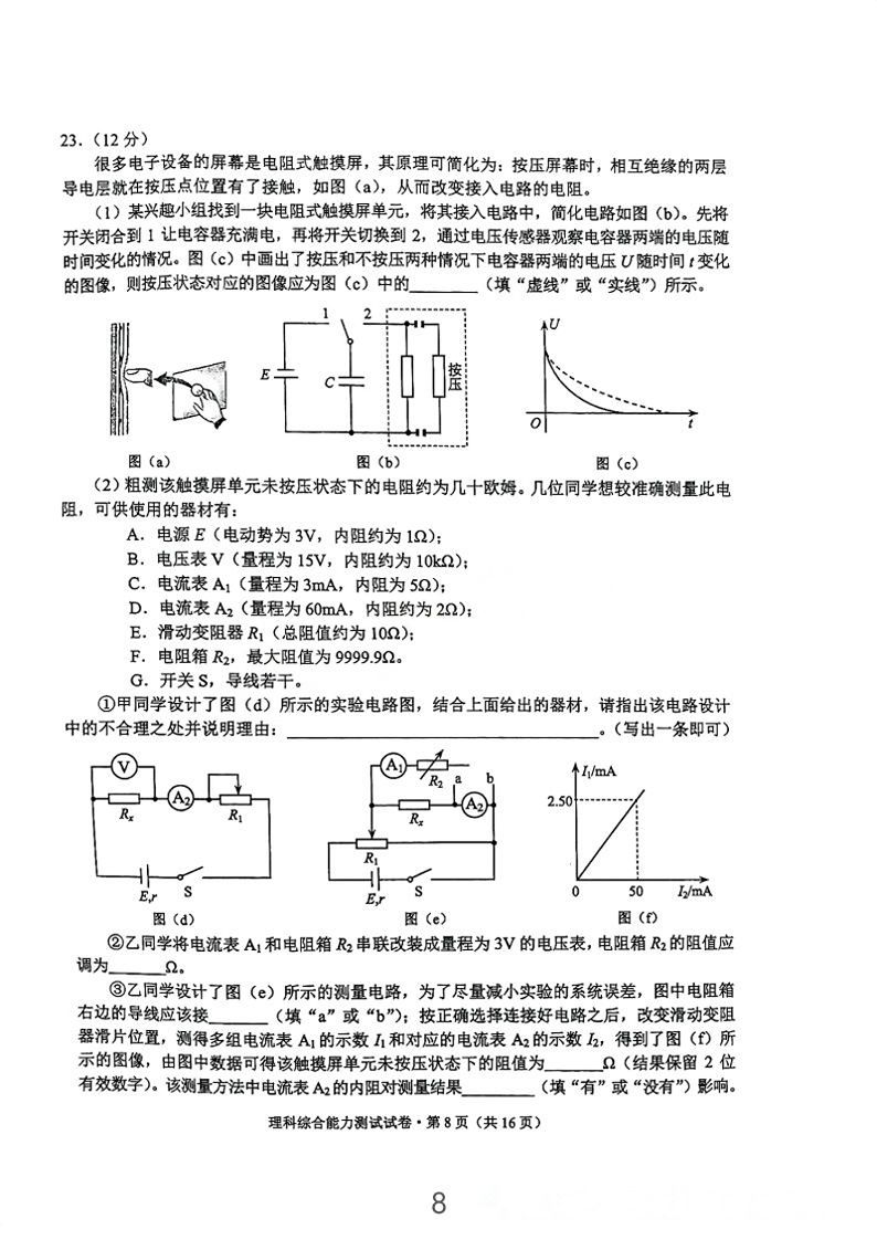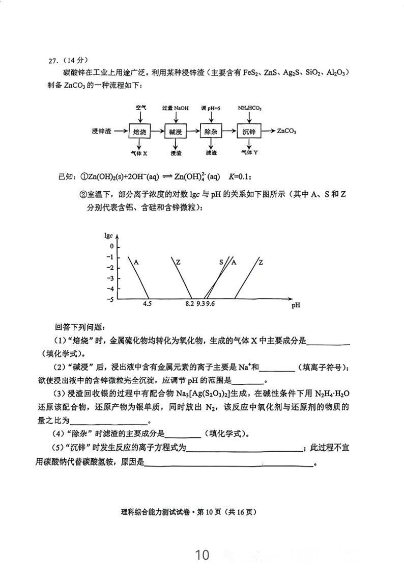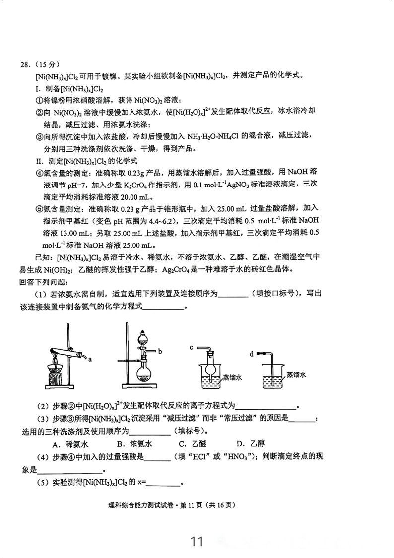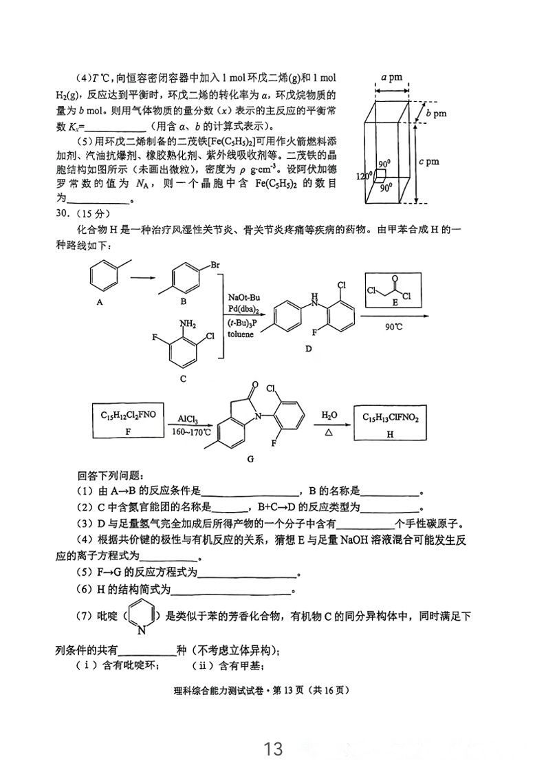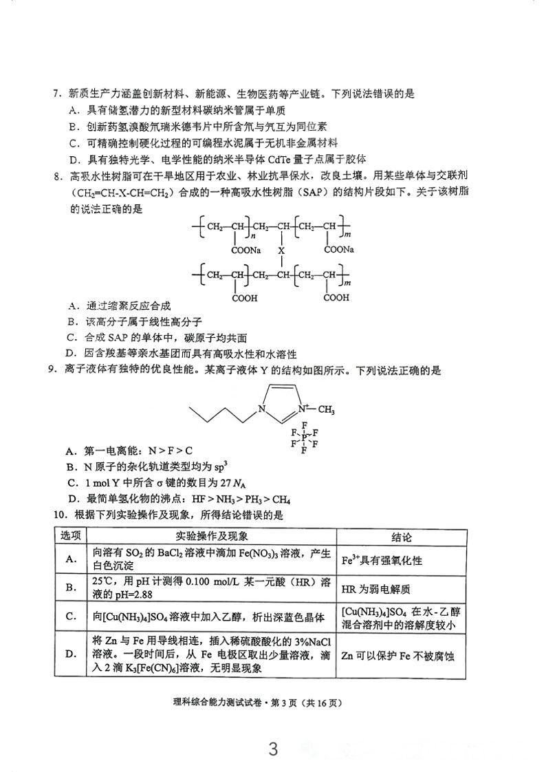 5.2024云南高三第二次统测理综试卷及答案解析