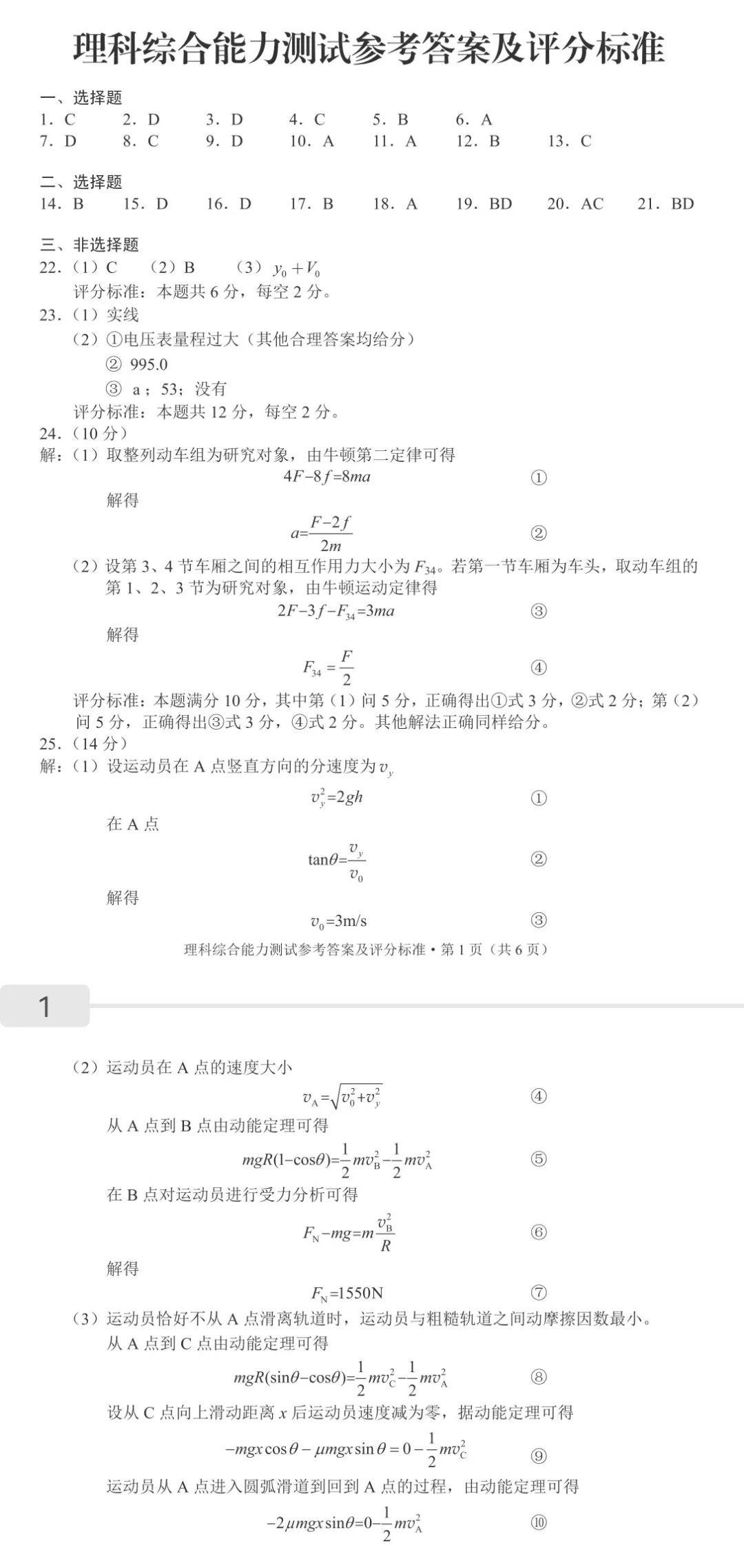 二、2024云南高三第二次统测各科答案及试卷汇总