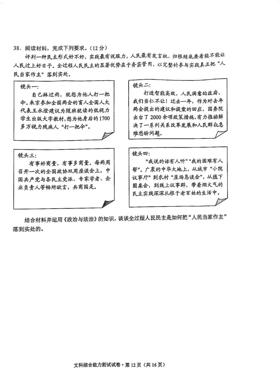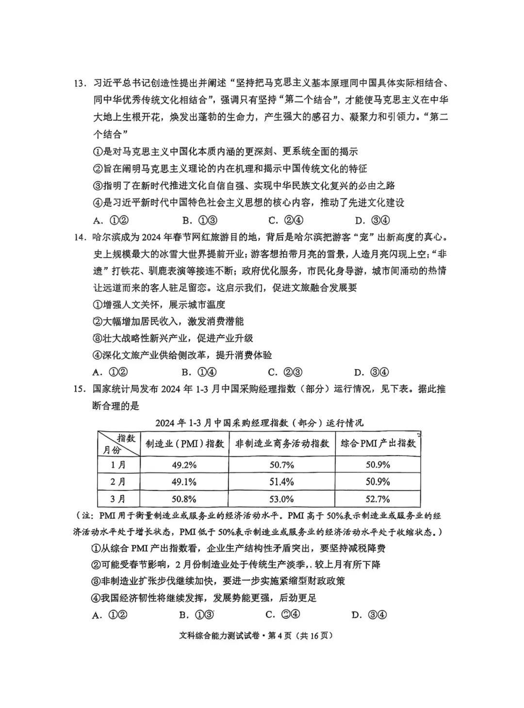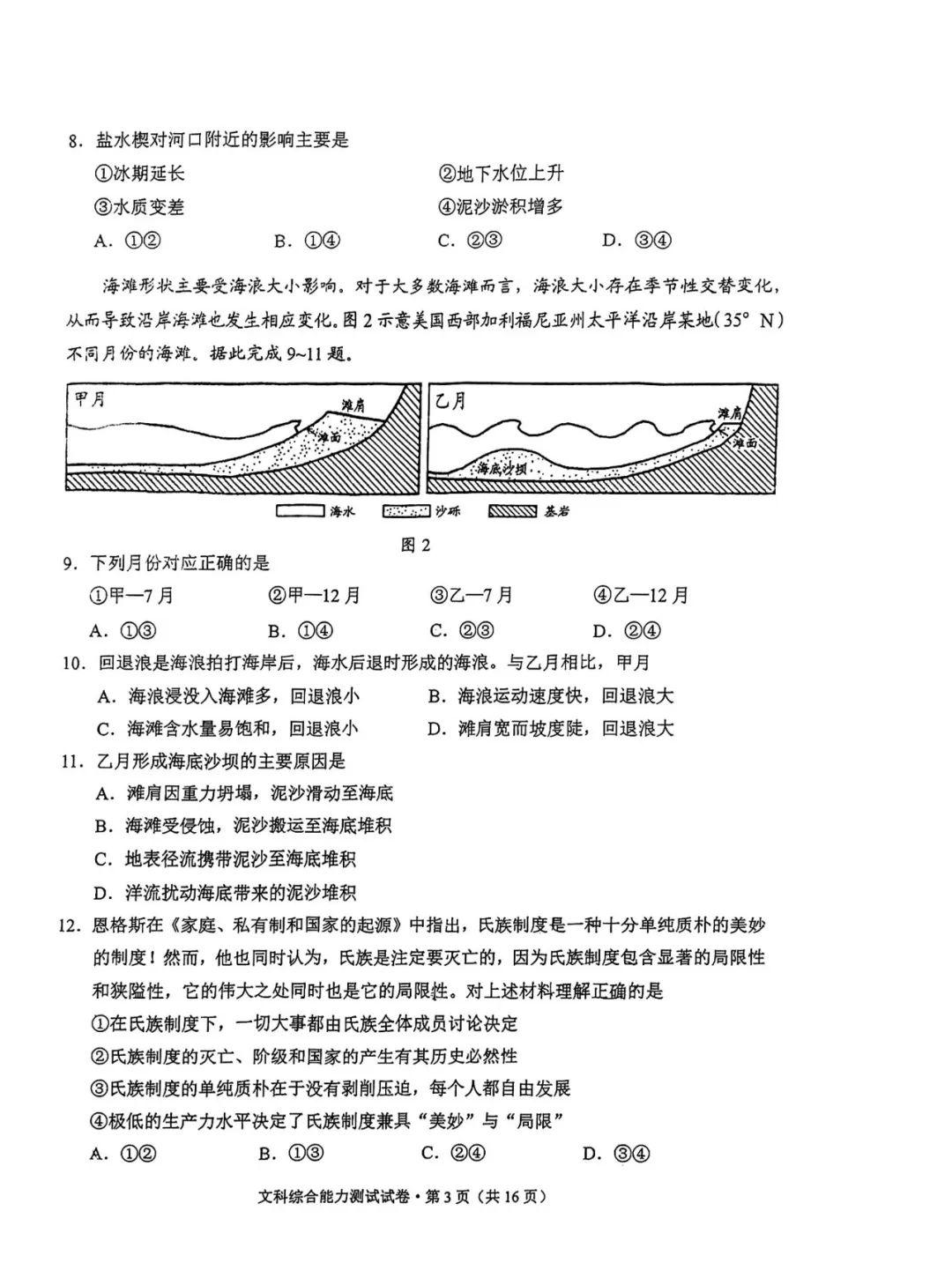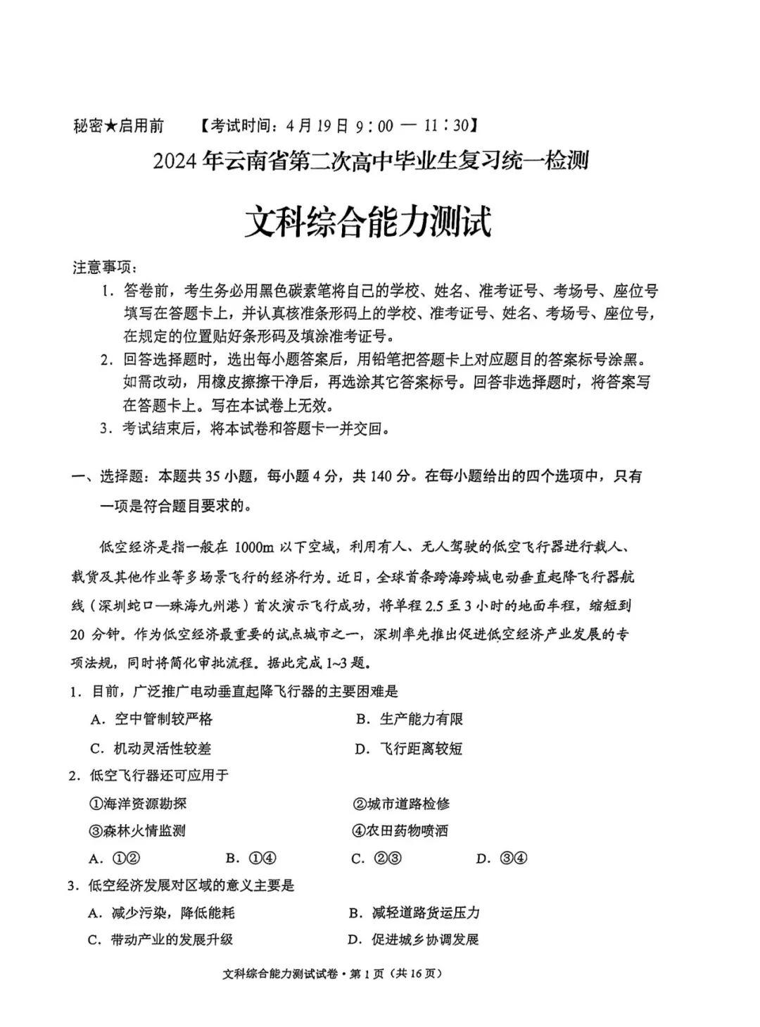 4.2024云南高三第二次统测文综试卷及答案解析