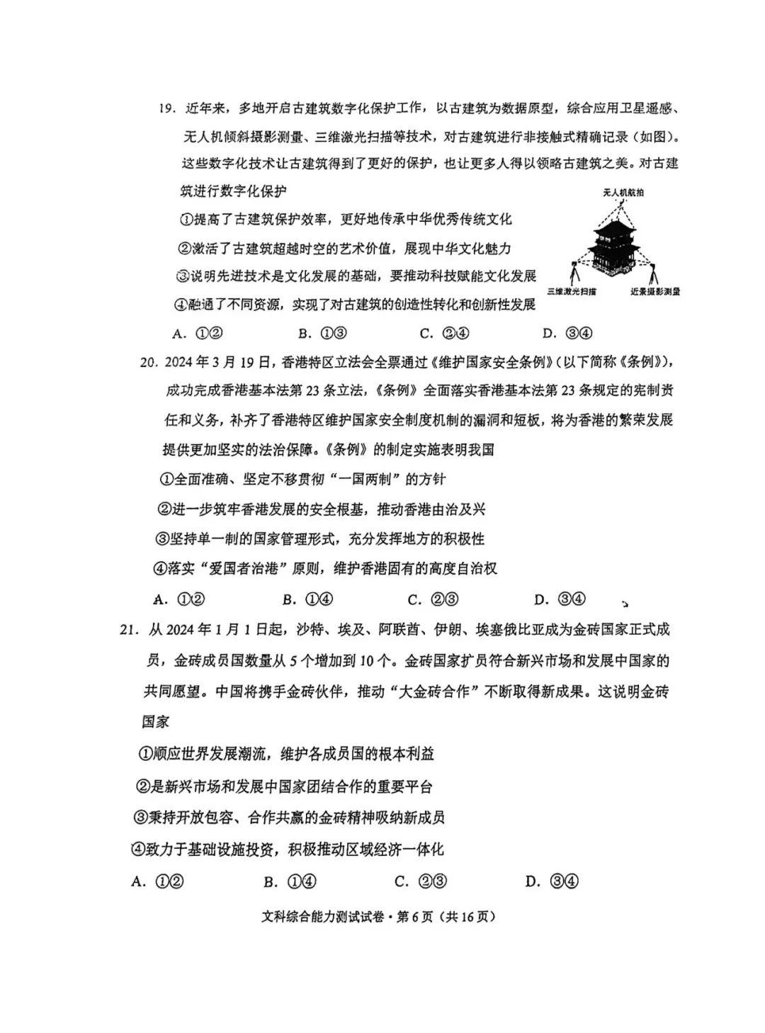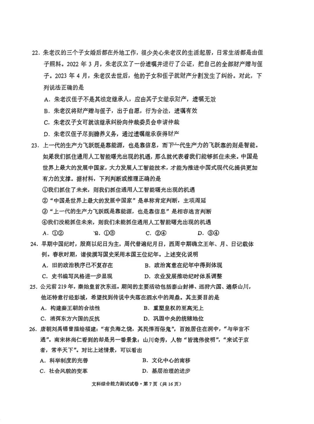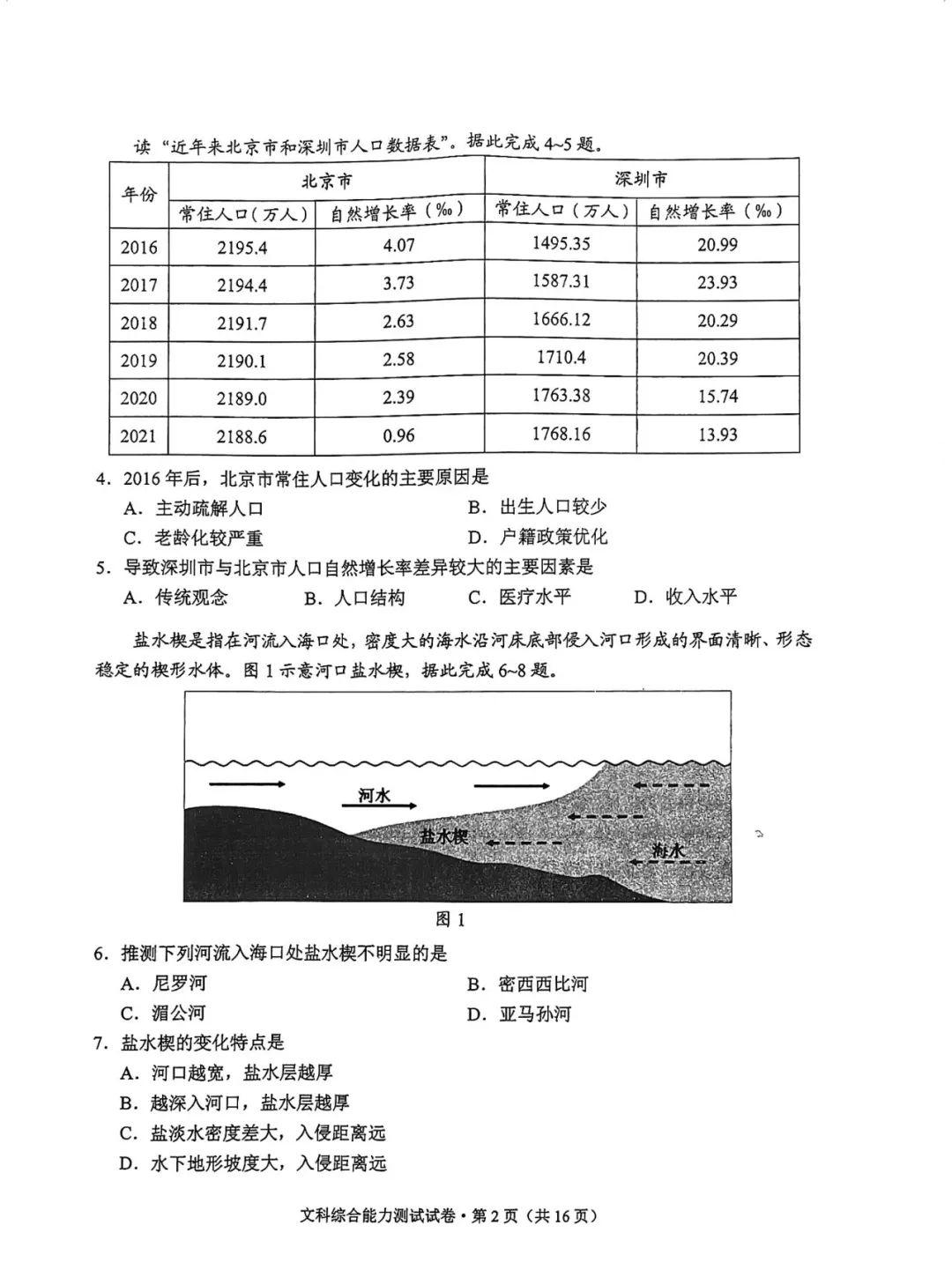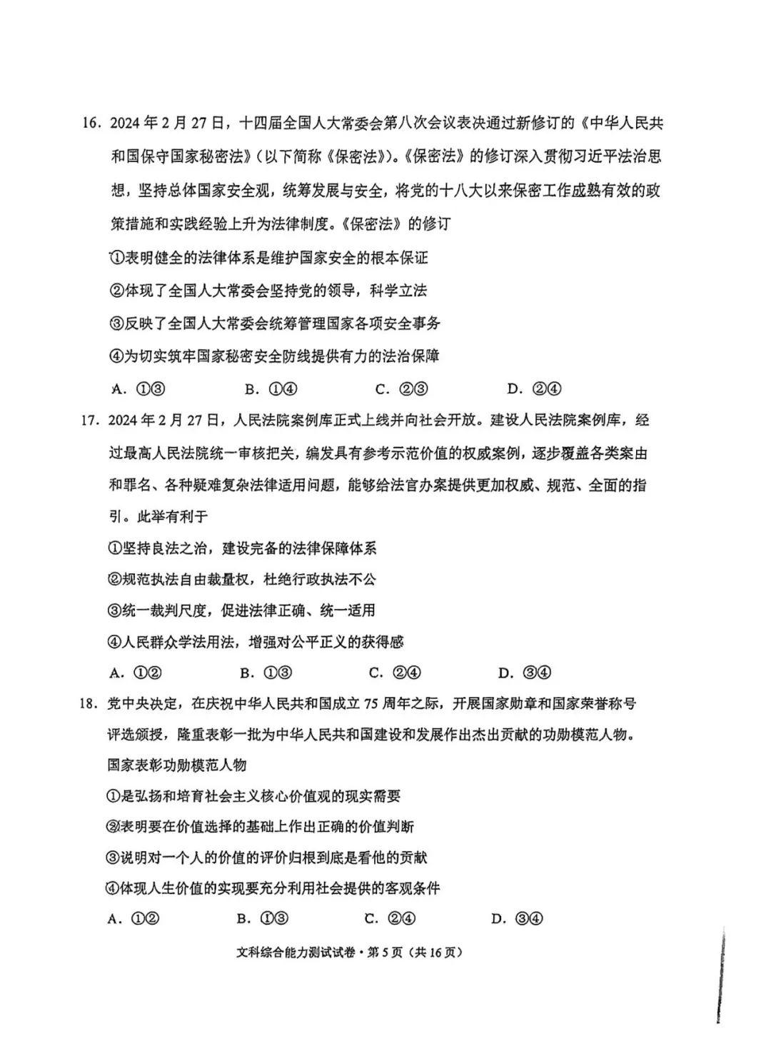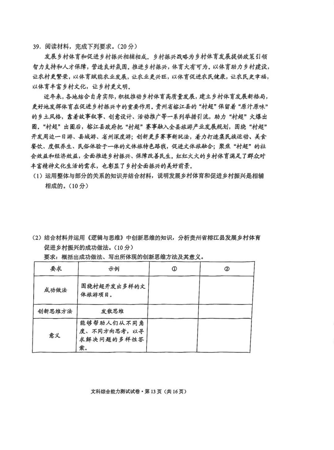 4.2024云南高三第二次统测文综试卷及答案解析