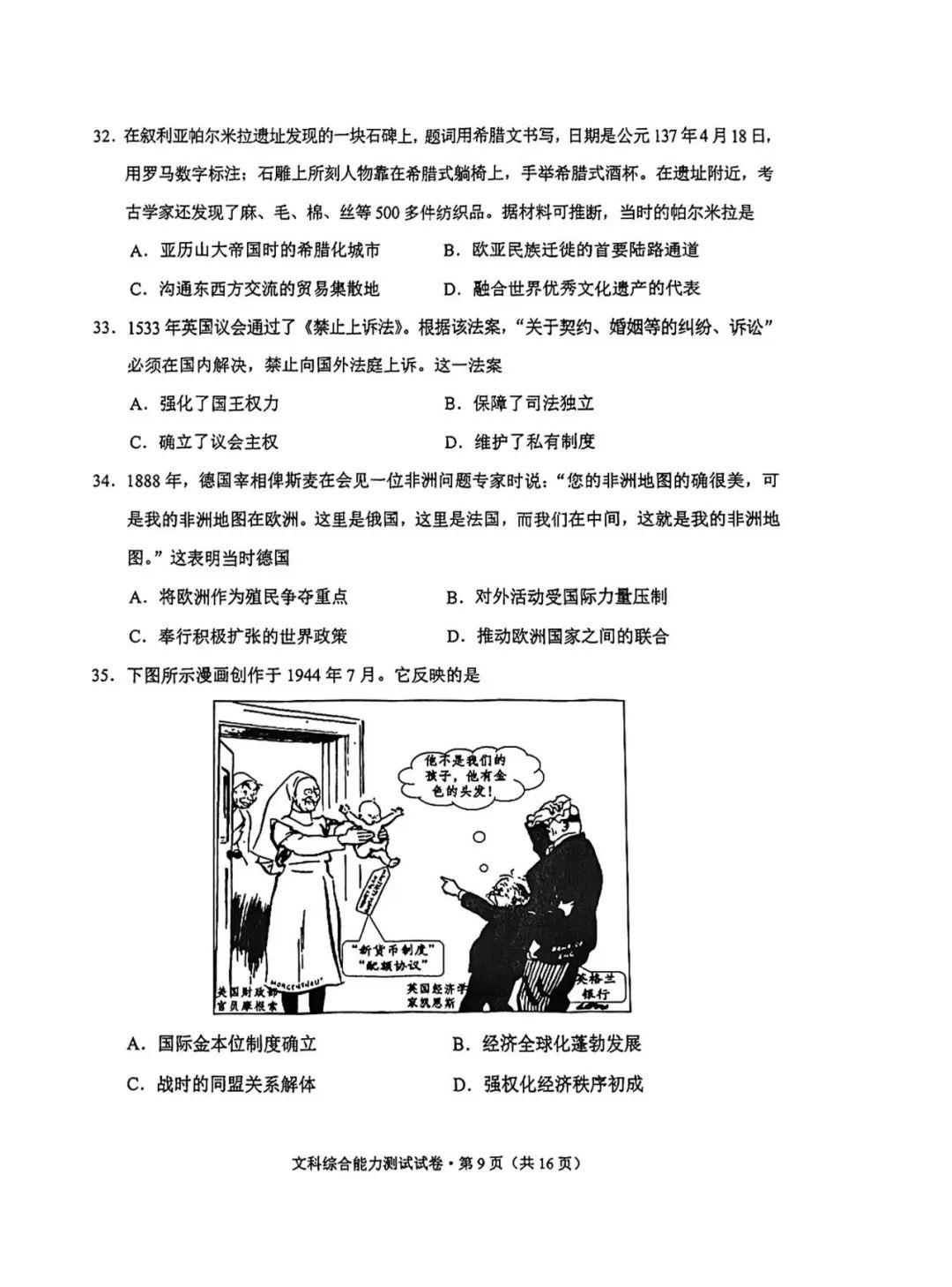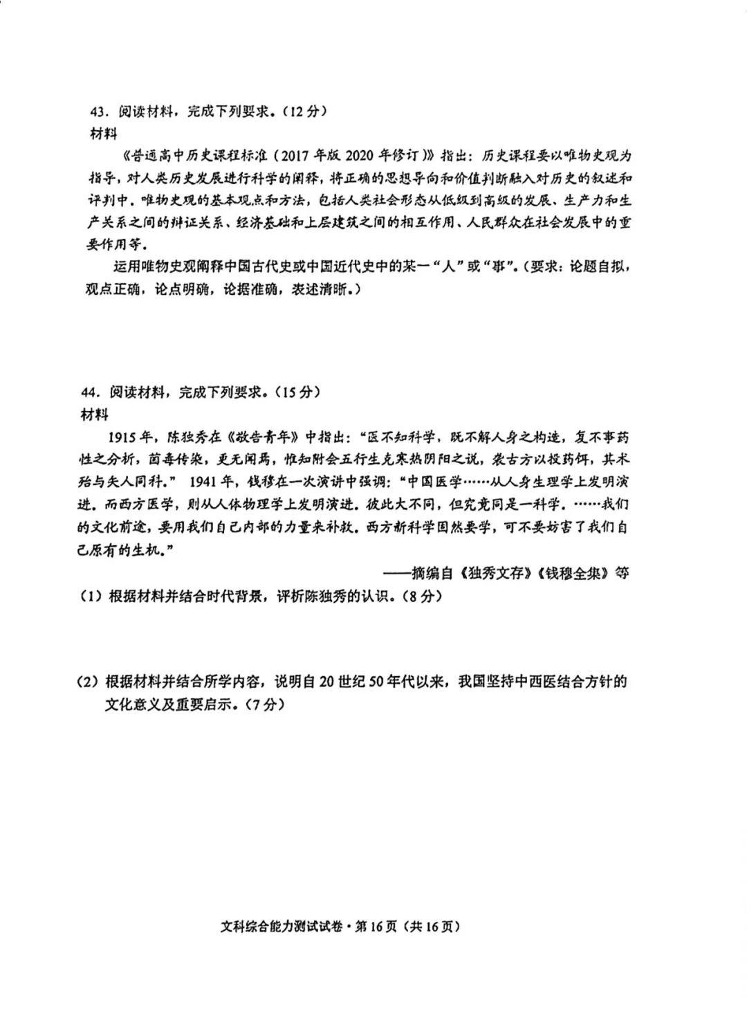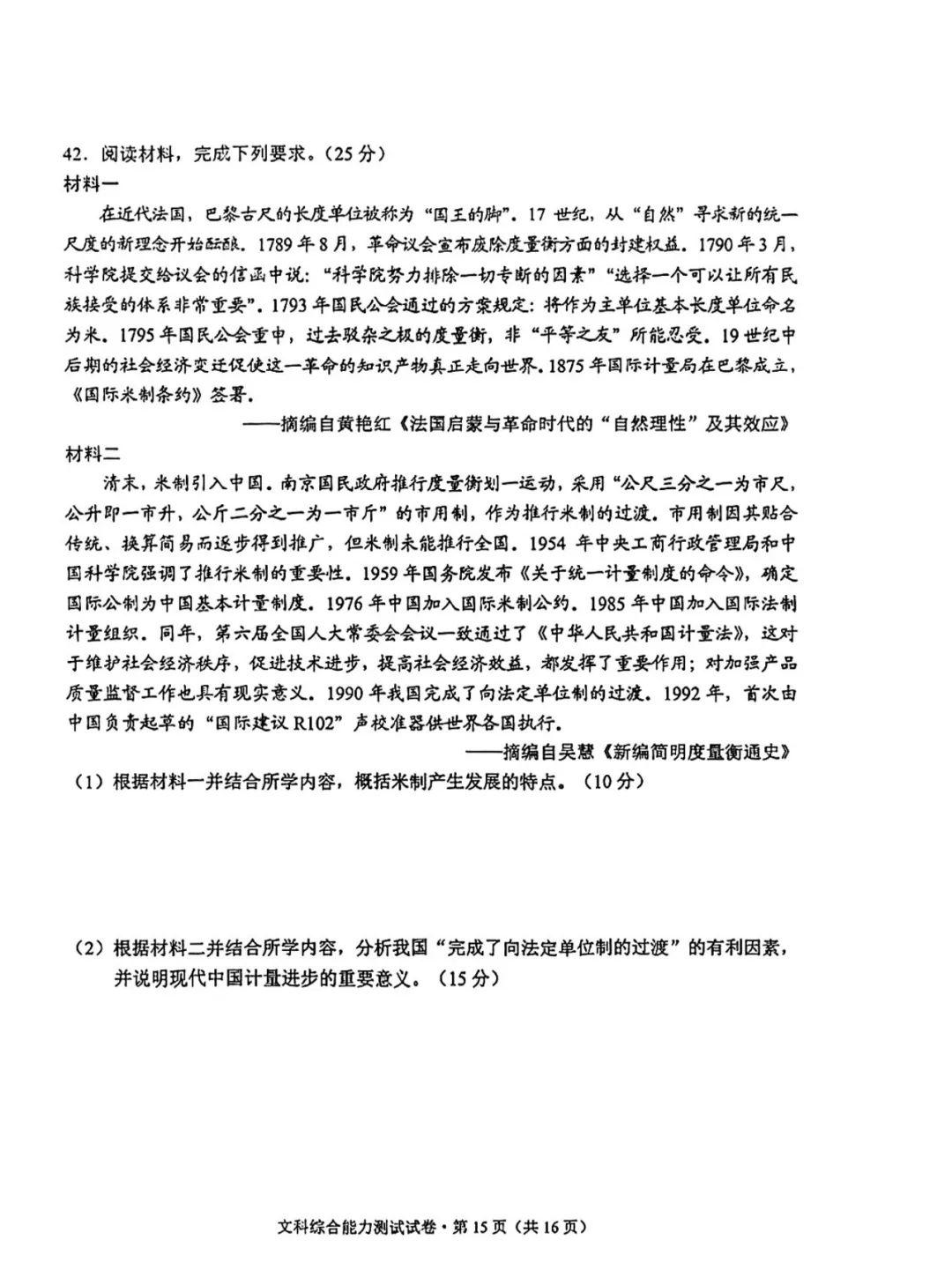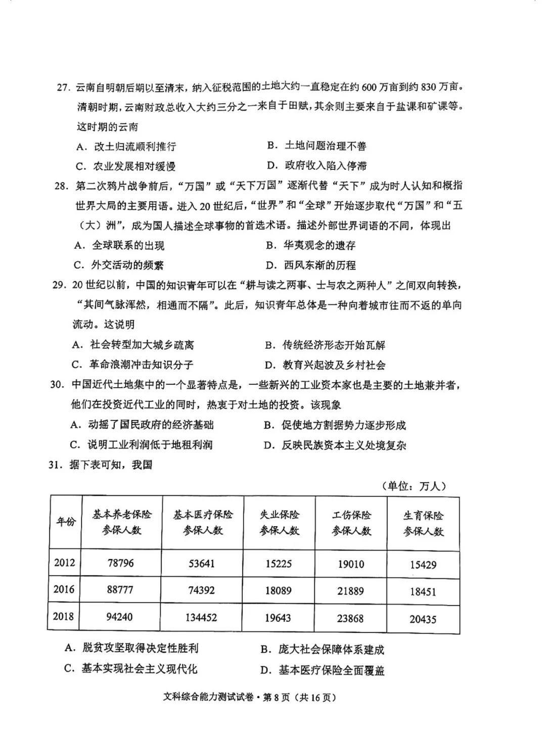 4.2024云南高三第二次统测文综试卷及答案解析