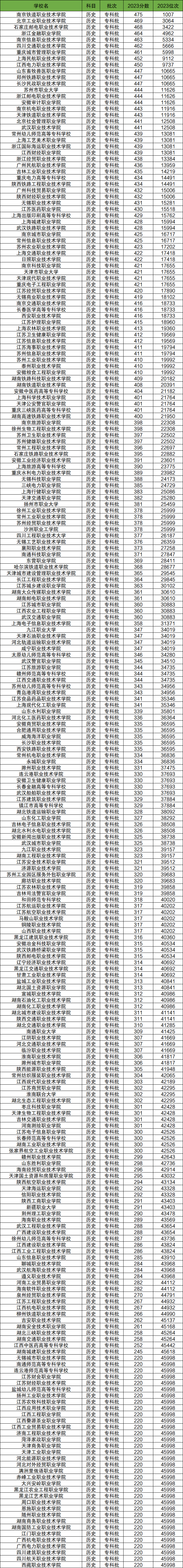 公办专科院校在江苏历史类的最低分如下表: