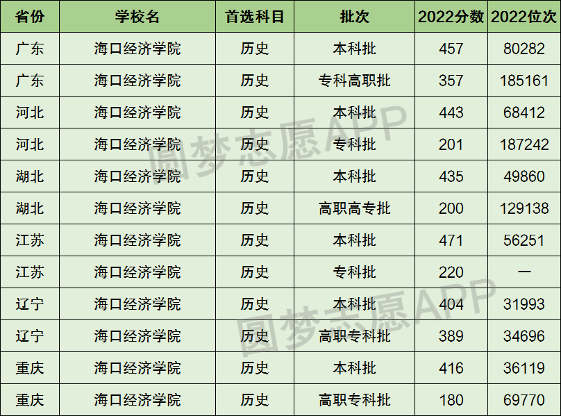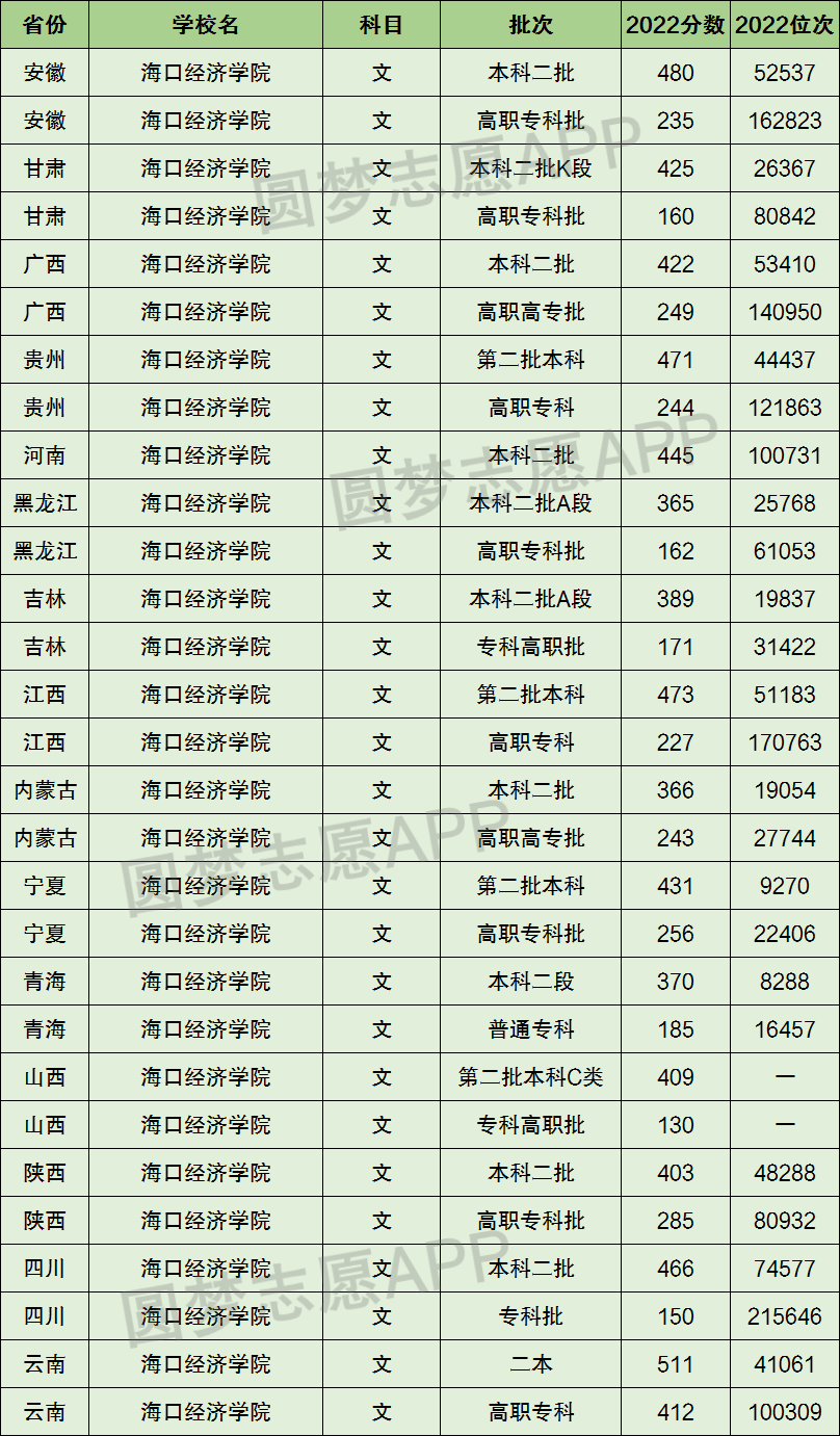 下面圆梦志愿将为大家展示海口经济学院2022年在全国各省市的最低分数线和位次,大家可以在了解海口经济学院在全国各省详细招生批次的同时,也顺便看看海口经济学院的招生录取分数线是多少!