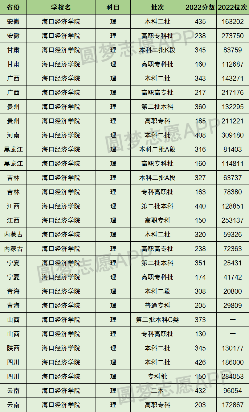 2、海口经济学院在全国普通高考省份的【理科】招录数据,包含招生批次等信息: