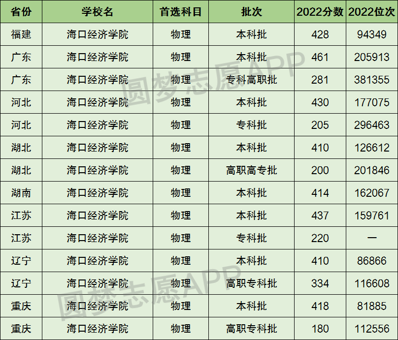 5、海口经济学院在3+1+2新高考省份【首选物理】的招录数据,招生批次为本科批或专科批: