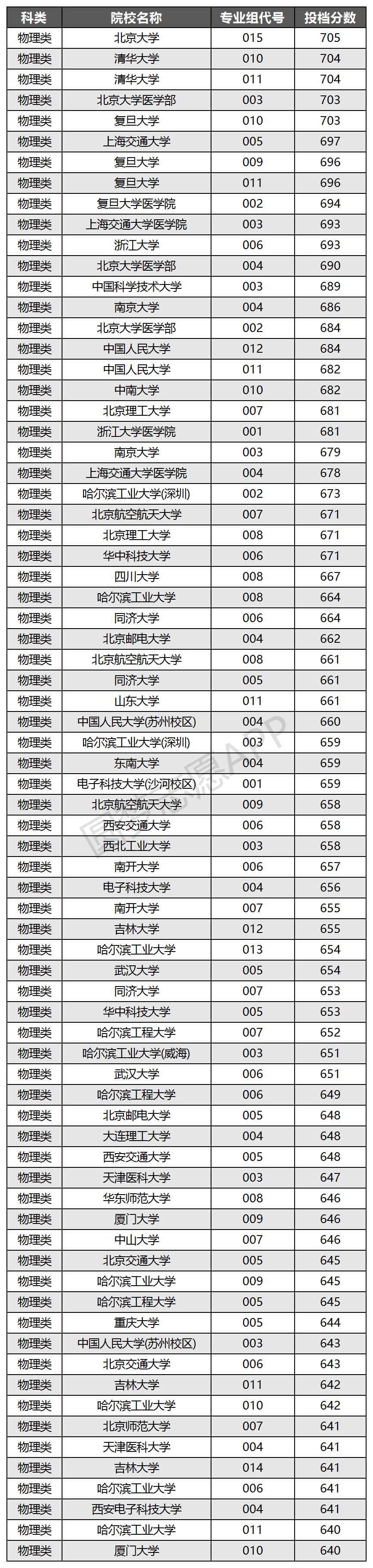 下面是收分在640分及以上大学名单: