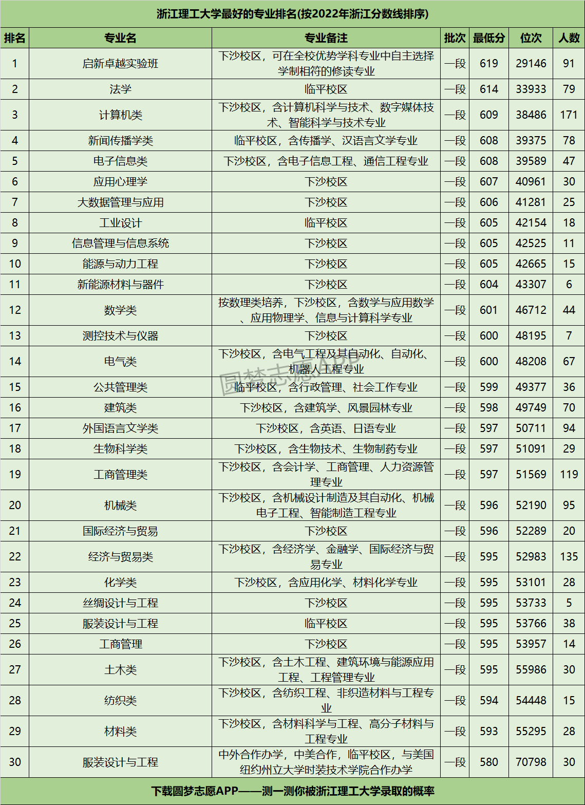 友情提醒:下载圆梦志愿APP,可查阅浙江理工大学在你的高考省份各专业的录取分数线、位次排名。(各大手机应用市场均可下载圆梦志愿APP)
