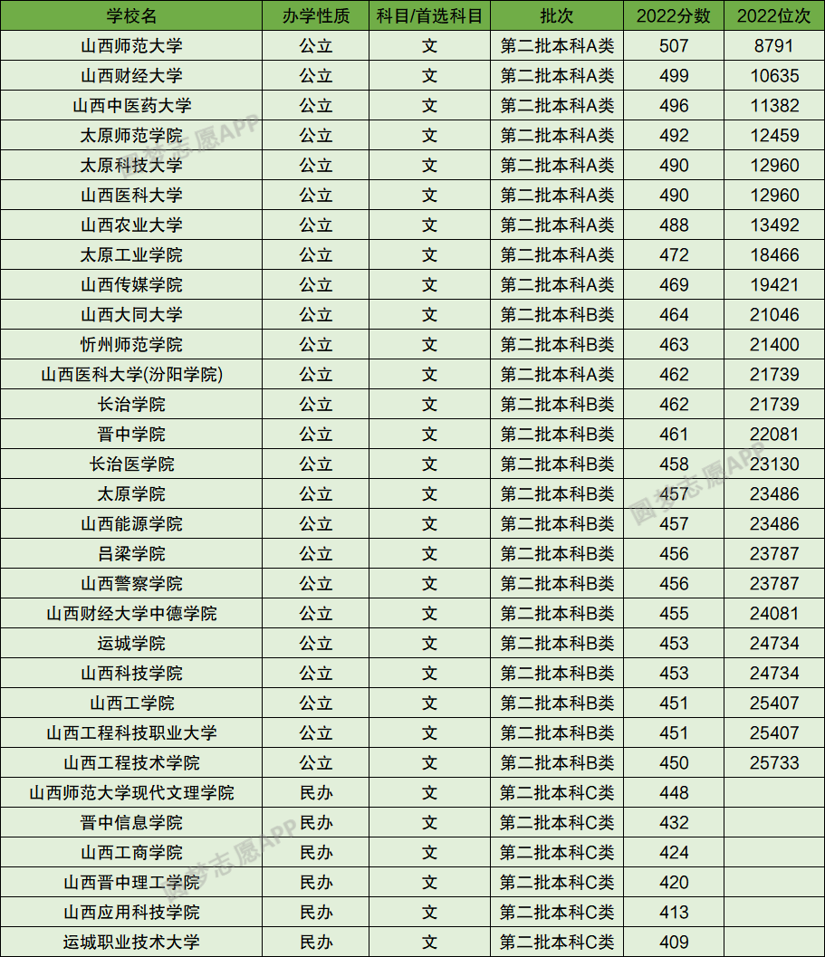 (2022年山西二本线为文科450分、理科417分。)