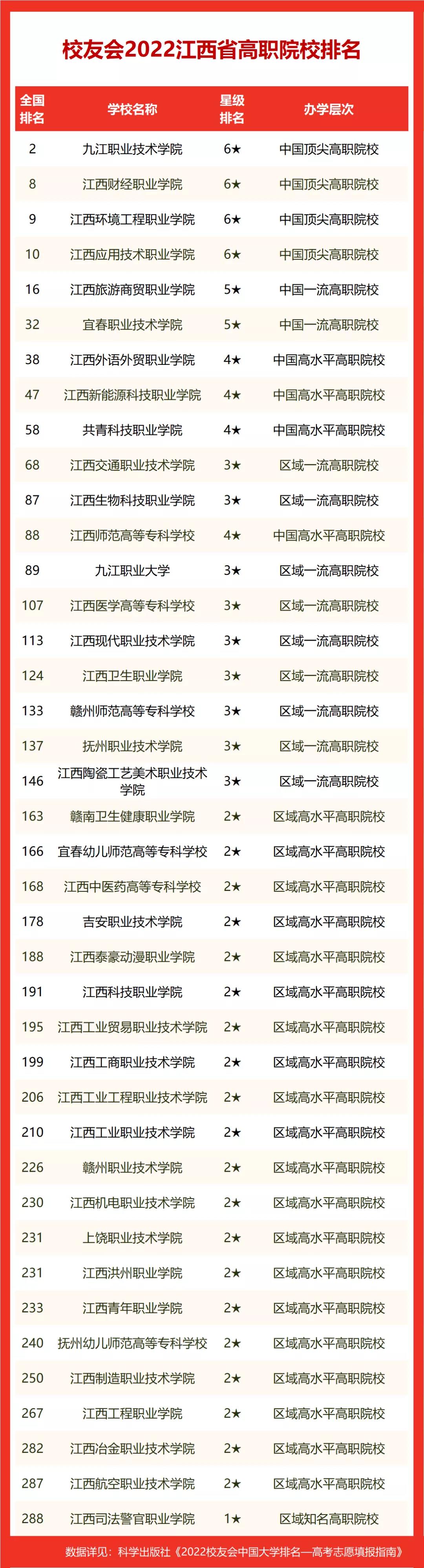 10、共青科技职业学院(全国排名第58名),以下为江西省所有高职院校完整排名: