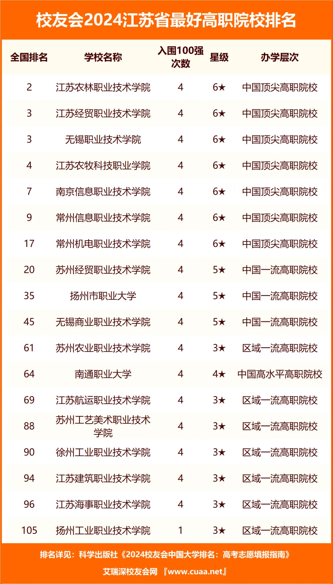 本文根据校友会2024全国大学排名情况为大家整理了江苏十大最好的职业院校,江苏省前十名的大专院校分别有: