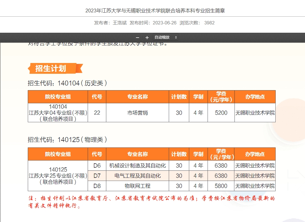 最重要的是无锡职业技术学院还是为数不多的招收本科学生的专科院校,从2012年起与江苏大学联合培养四年制本科生,办学点设立在无锡职业技术学院,在本科批次招生。学生在校期间的学习、生活均在无锡职业技术学院,教学与管理以无锡职业技术学院为主。学生学习期满,课程通过,颁发江苏大学毕业证书;对符合江苏大学学士学位授予条件的学生颁发江苏大学学位证书。