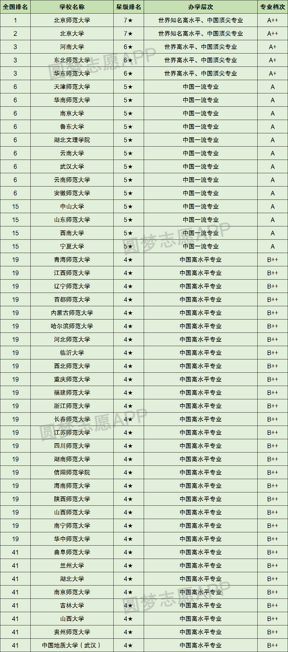 2022年校友会地理科学大学排名上榜高校有48所,完整排名和专业评级如下表: