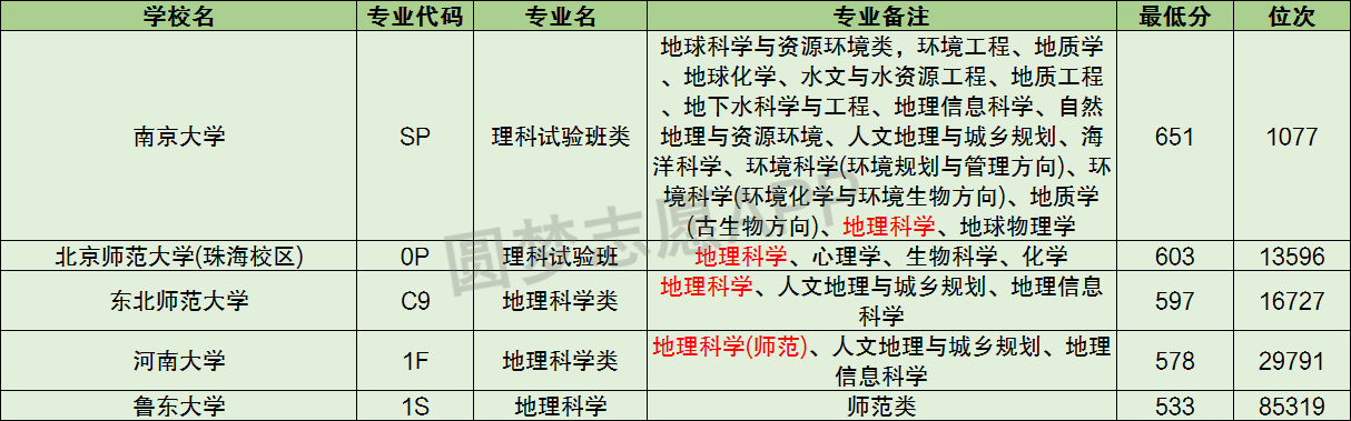 二、地理科学十大名校分数线排名