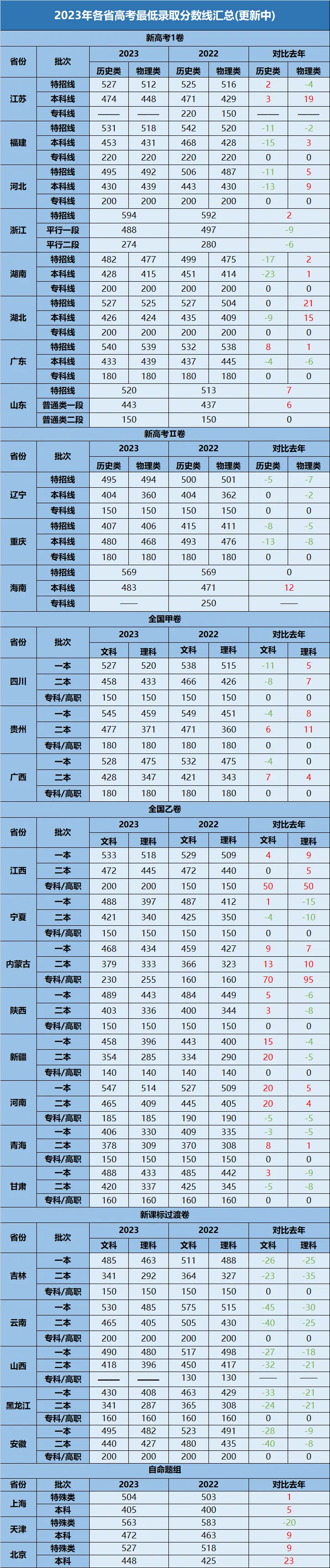 想要知道2024年高考各省分数线的情况,可以参考2022-2023年各地高考批次线进行预估。不妨看看去年就公布的历年高考各省市批次线: