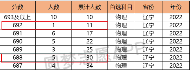 2、辽宁省物理类688分,在2022年对应全省最低排名为30,同时2022年辽宁高考中分数为688分的考生有5人。