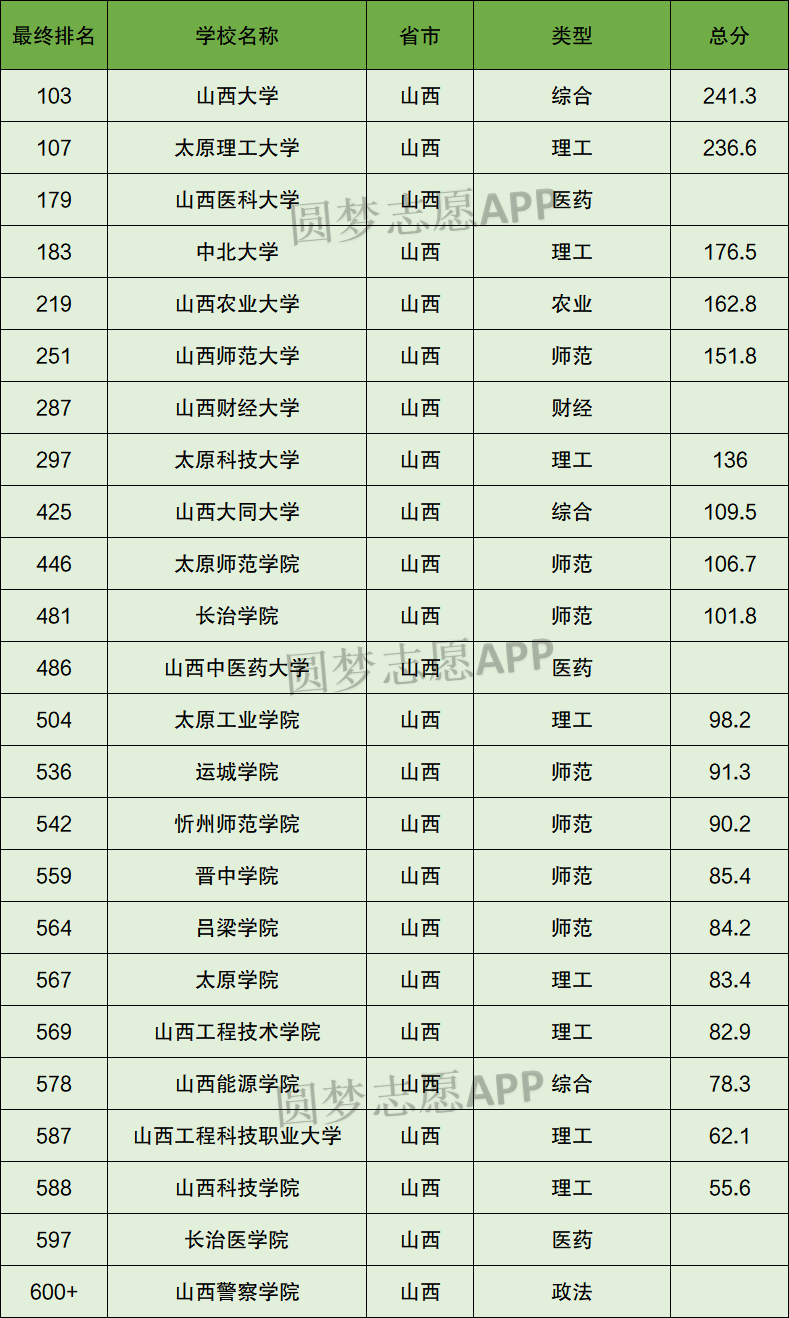 如果某所山西大学的排名很好但分数不高,说明这所山西大学实力好分数低,很有性价比。如果某所山西大学分数高,排名相对逊色,说明这所山西大学认可度不错。
