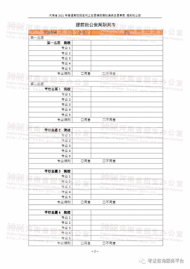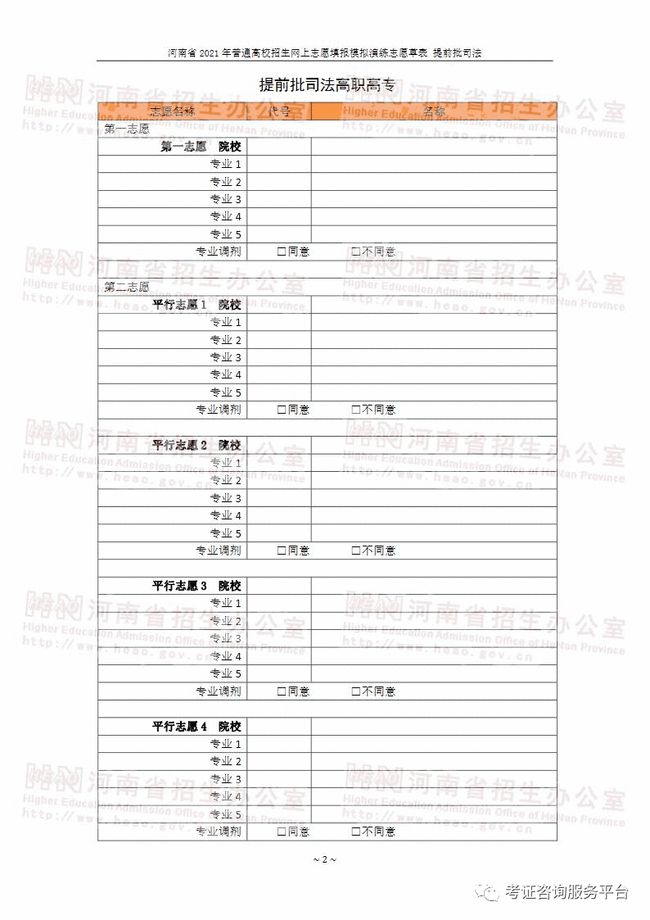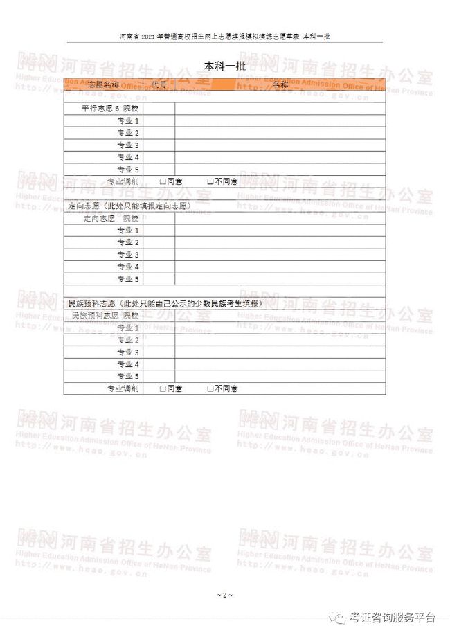 (注:河南志愿为平行模式,有是否同意调剂专业。)