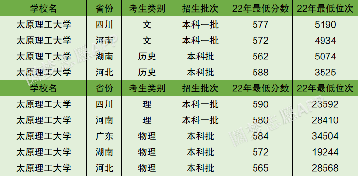 虽然太原理工大学在211大学中录取分数不算很高,但从全国大学整体来看,太原理工的分数也并不低,因此太原理工大学生源质量自然也是比较优秀的。小编整理了一下2022年太原理工大学在部分省份地区的最低分数线及对应位次表,具体如下。