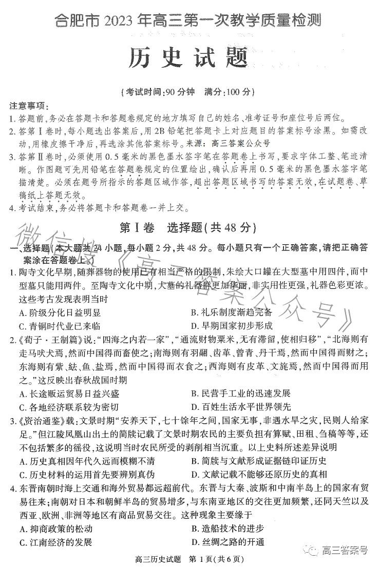 八、合肥一模2023历史试卷及答案