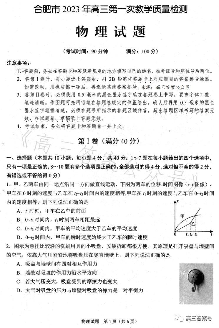 四、合肥一模2023物理试卷及答案