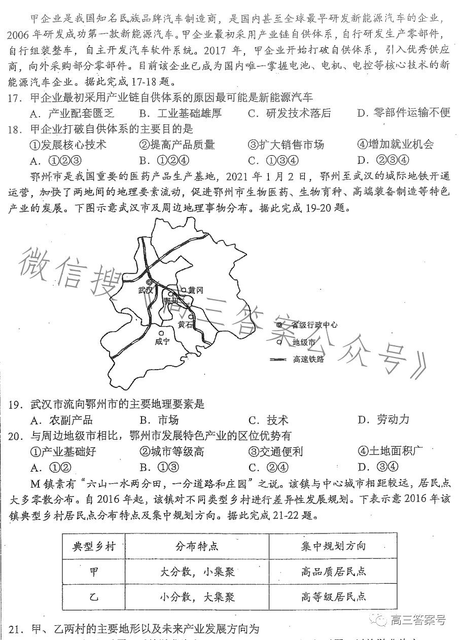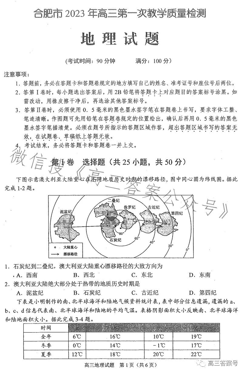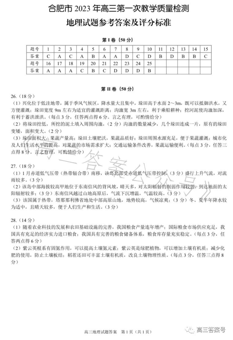 九、合肥一模2023地理试卷及答案
