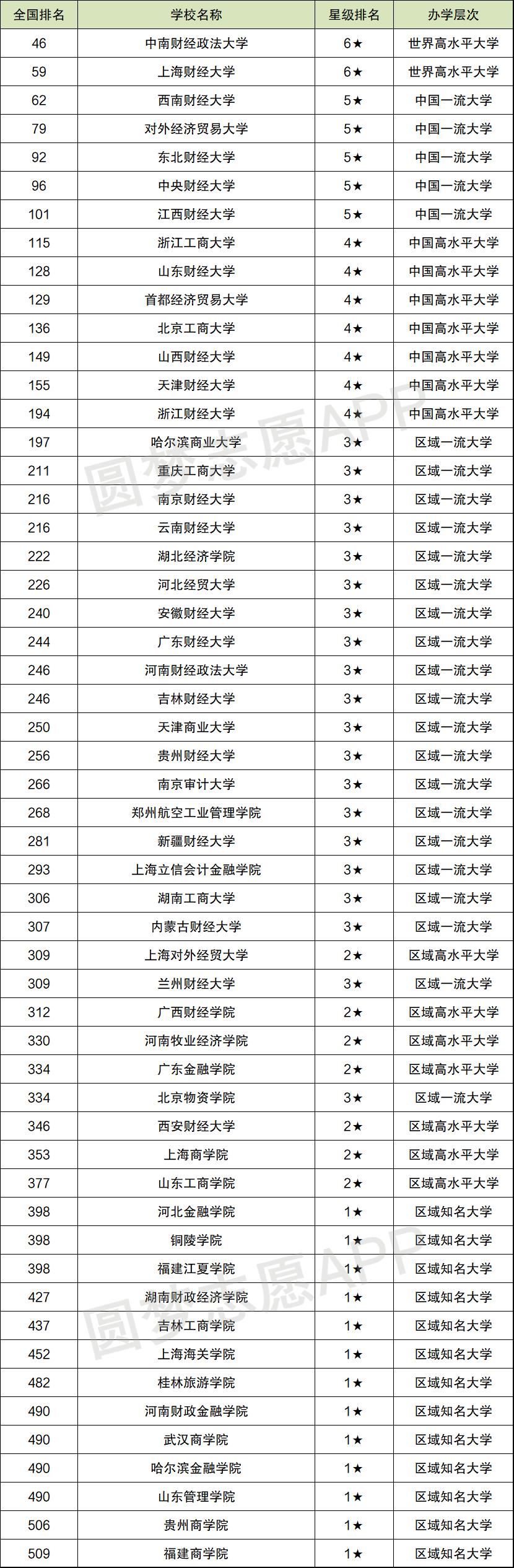 2022年财经类大学排名: