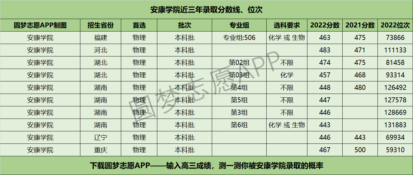三、安康学院近三年录取分数线及位次【首选物理版】