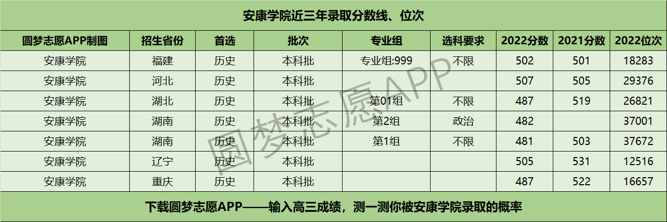 四、安康学院近三年录取分数线及位次【首选历史版】