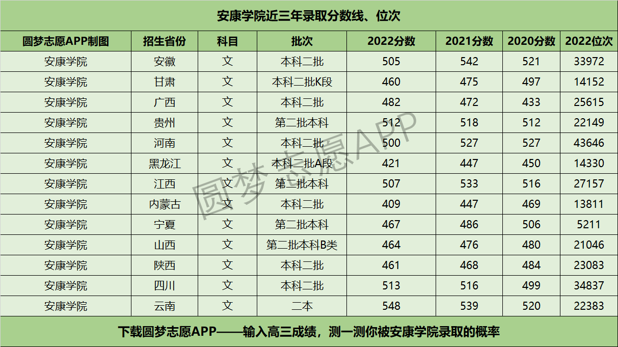 二、安康学院近三年录取分数线及位次【文科版】