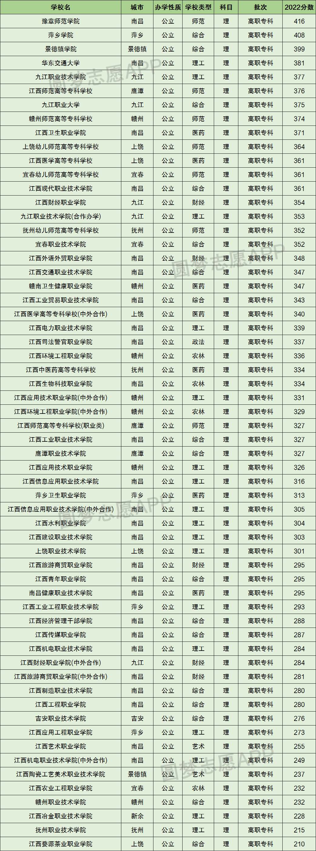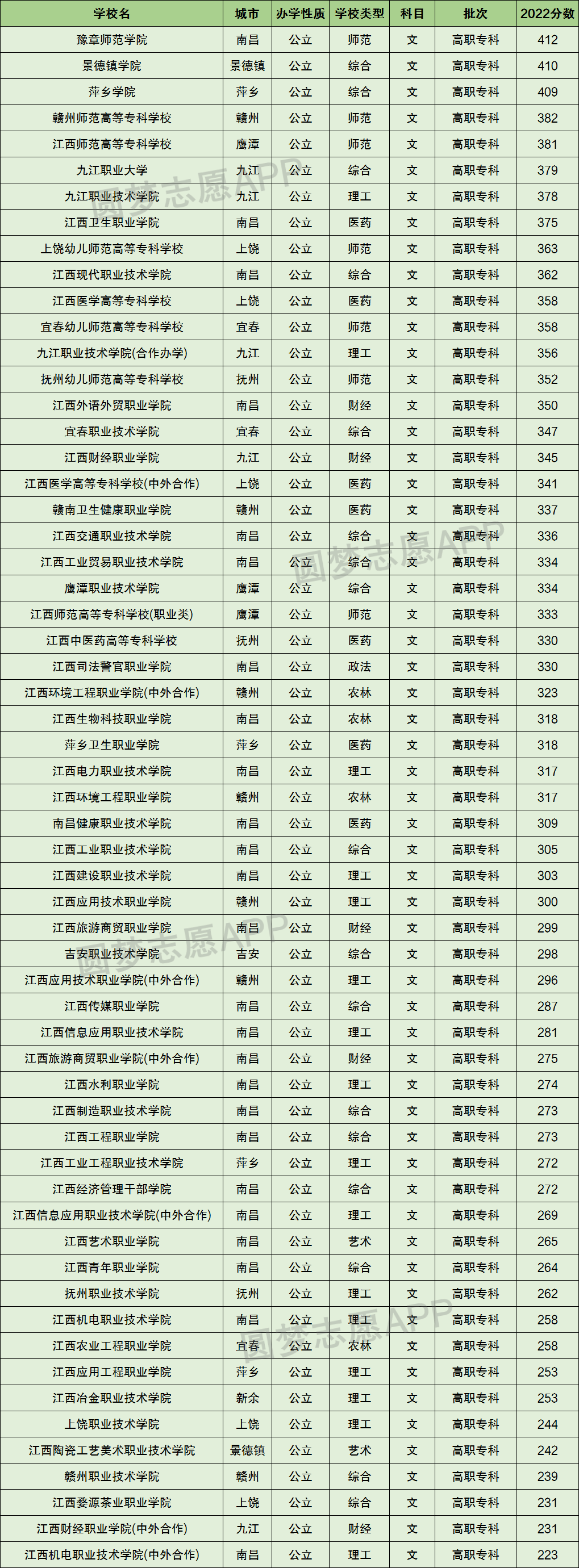 以下是小编根据圆梦志愿APP提供的数据,为大家整理出的江西省2022年所有专科学校分数线排名。