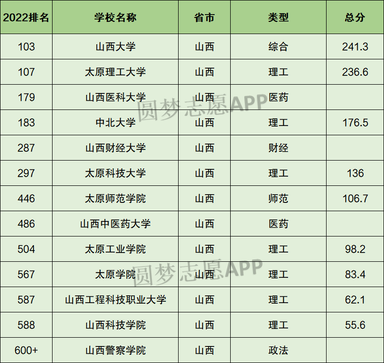 根据软科2023年中国大学总榜排名可知,太原市内有13所本科大学进入全国大学前800强,这些大学均是太原市内乃至全国都比较强的大学。具体入选名单及排名如下图: