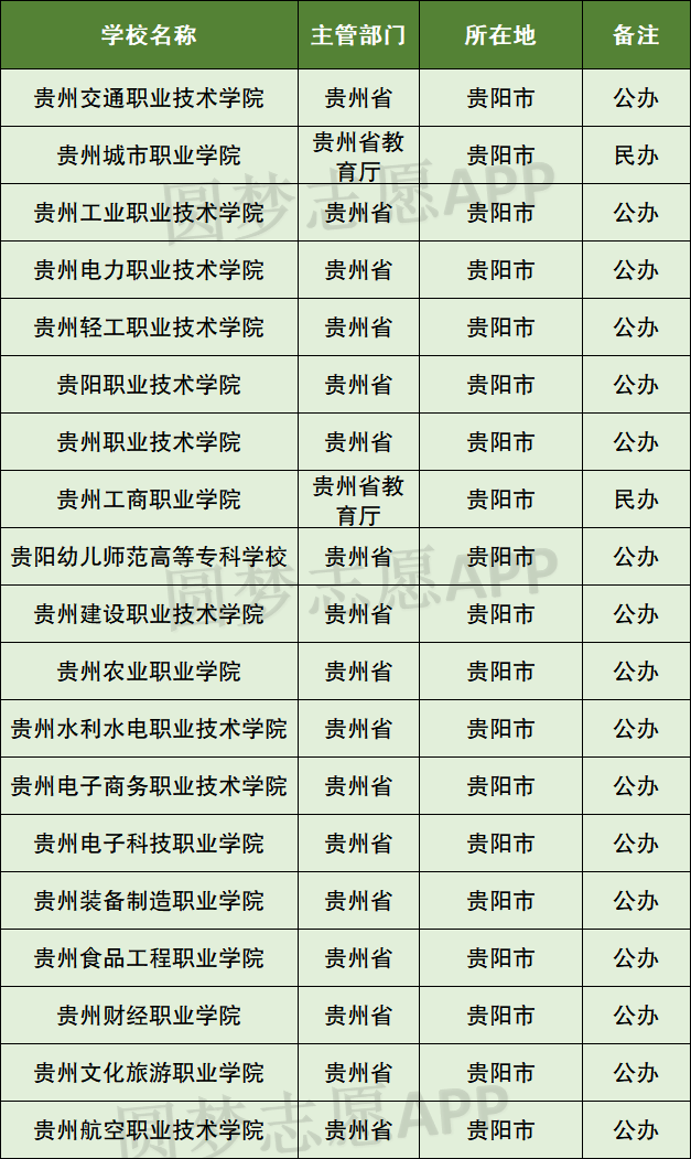 以下将分别介绍贵阳市专科学校排名前十的学校名单。