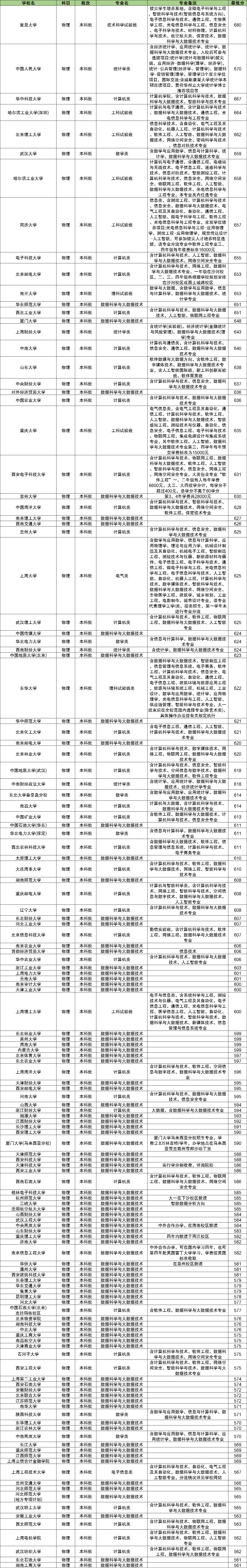同济大学:工科试验班(信息类,含测绘工程、计算机科学与技术、信息安全、数据科学与大数据技术、电气工程及其自动化、自动化、通信工程、人工智能、微电子科学与工程、软件工程、光电信息科学与工程专业),657分。