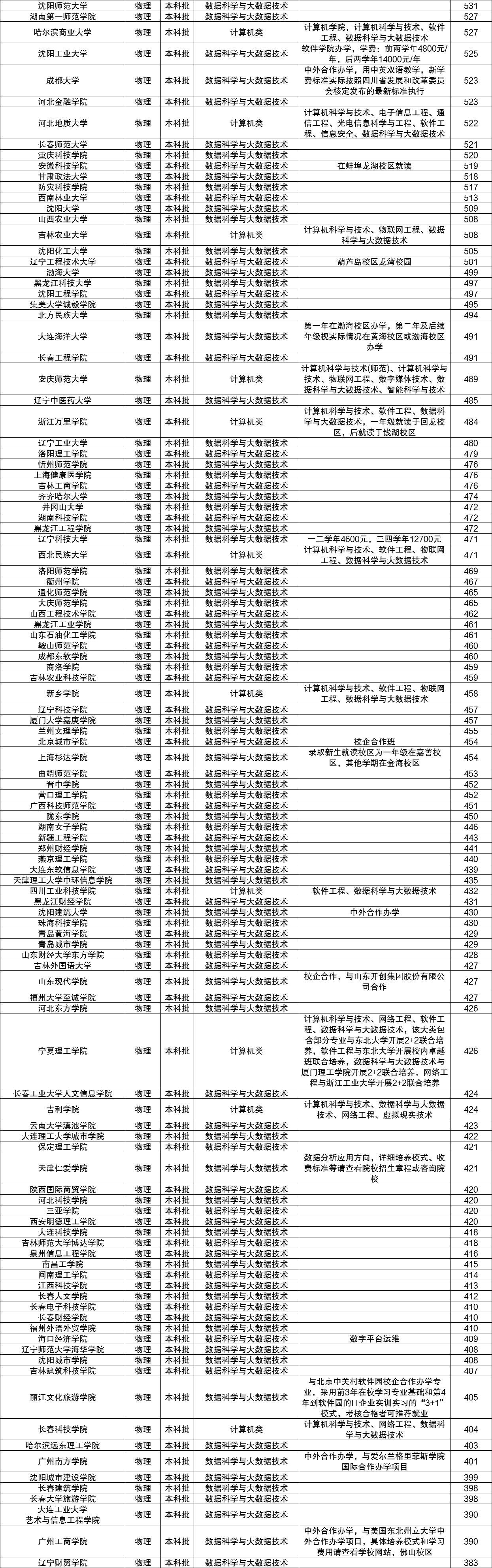 二、数据科学与大数据技术专业排名及分数(辽宁)